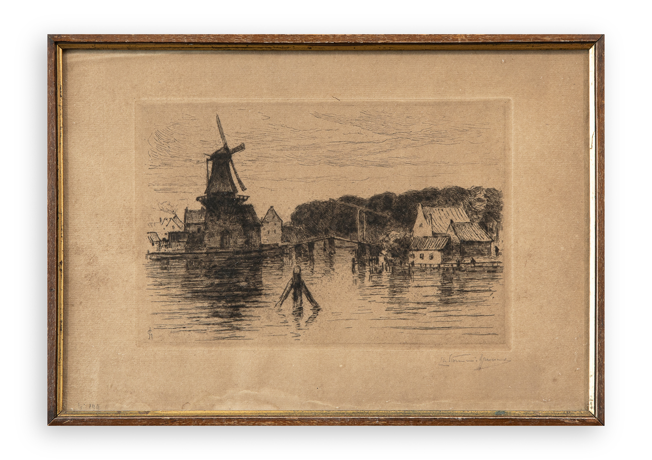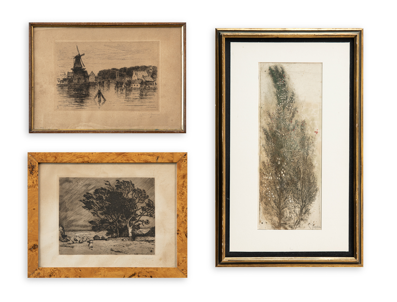 Lotto unico di 3 acqueforti, ciascuna recante firma indecifrata a matita al fronte