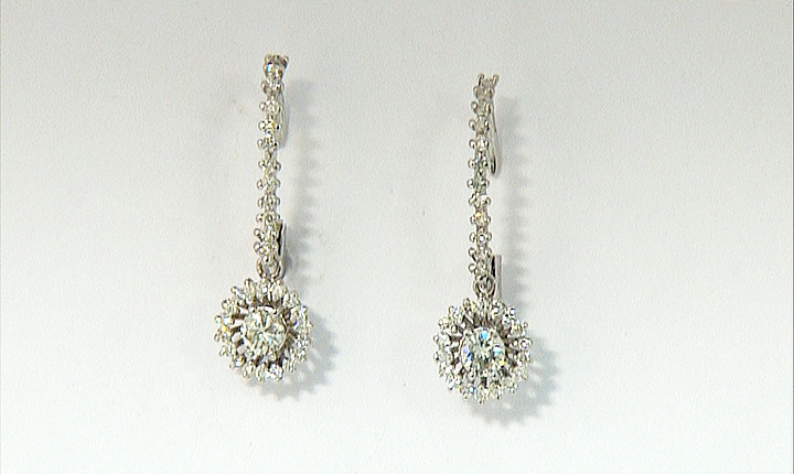 COPPIA DI ORECCHINI. In oro bianco 18 kt a monachella e clip con settori oscillanti a fiore centrati da diamanti taglio brillante per tot. cts. 0,50 ca. entro contorno in diamanti taglio brillante per tot. cts. 0,70 ca.