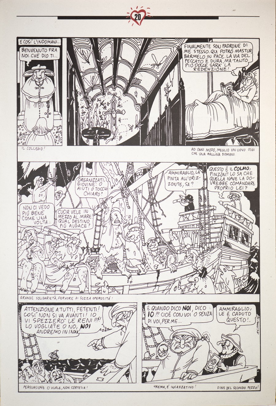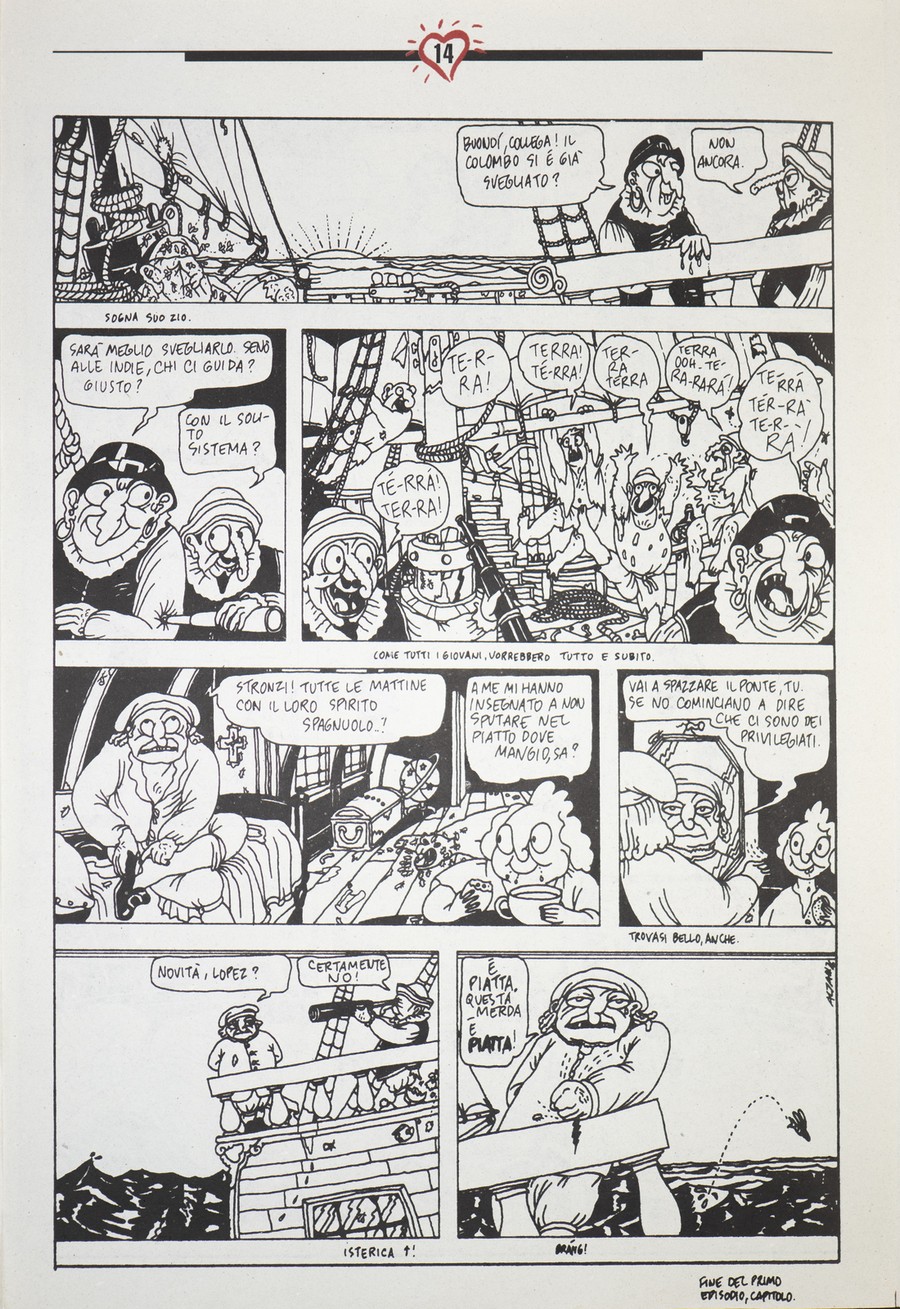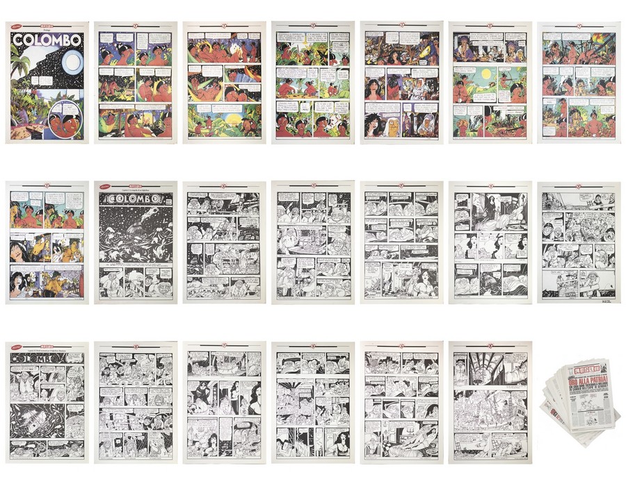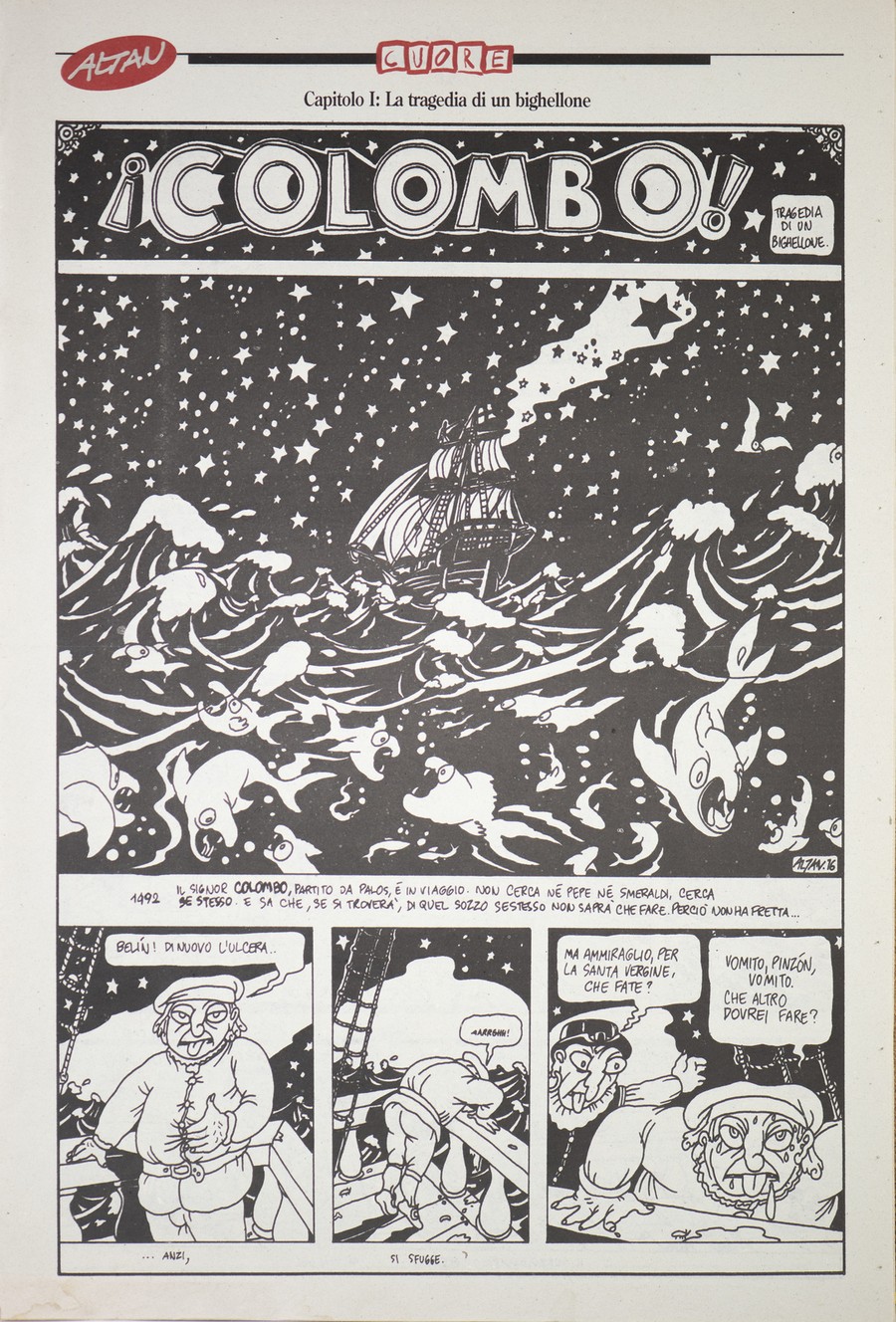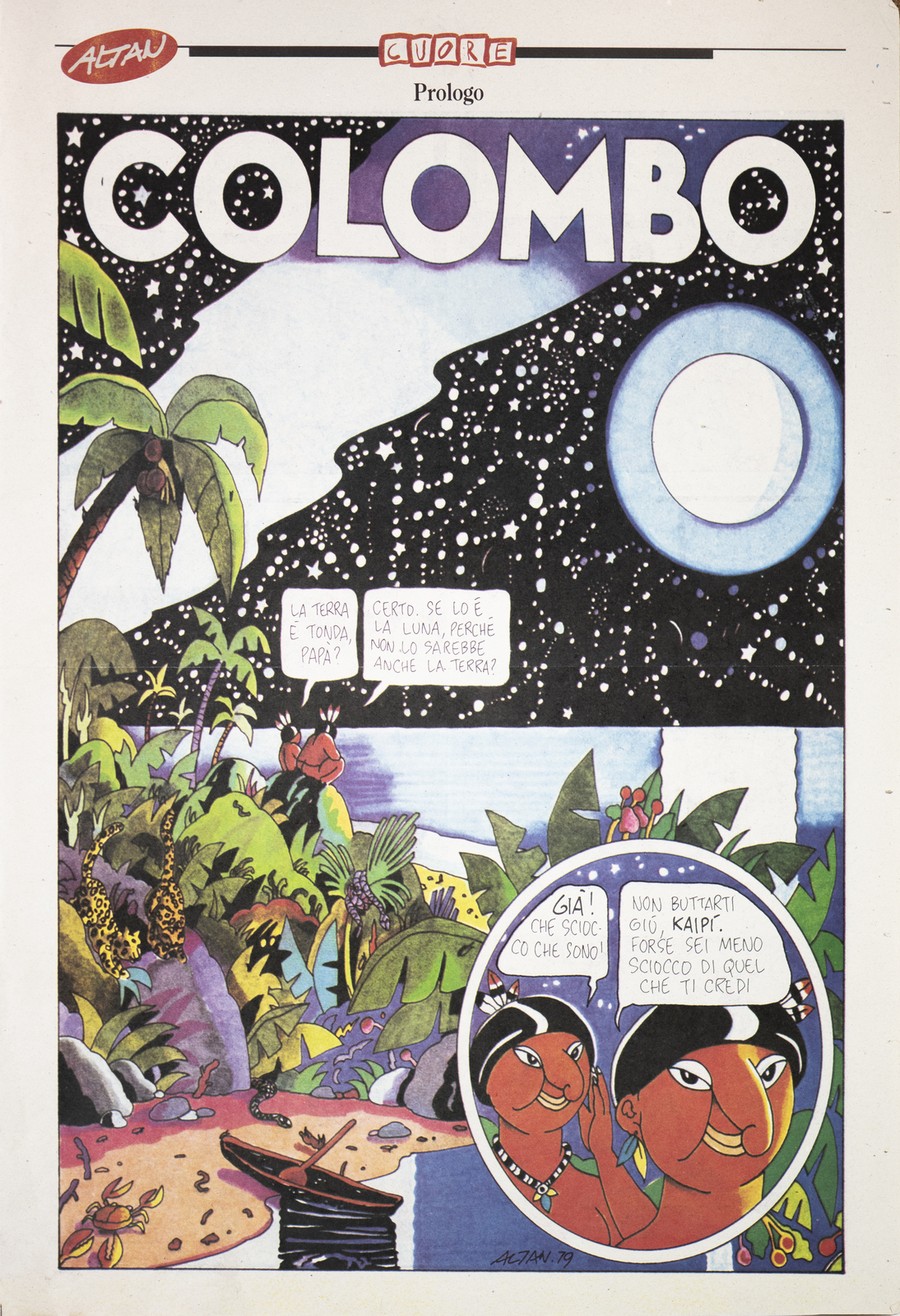 AA.VV 50 NUMERI DI "CUORE", STORICA RIVISTA DI SATIRA, DAL 50 AL 100 e L'INTERO "COLOMBO" DI TULLIO ALTAN IN ALLEGATO . 1995. Giornale. Cm 31,00 x 47,00. "La storia di Colombo" fu pubblicata su 7 numeri della rivista, il primo contiene il prologo (8 pagine a colori) e ciascuno degli altri 6 numeri (12 pagine ognuno) contiene due capitoli della storia.