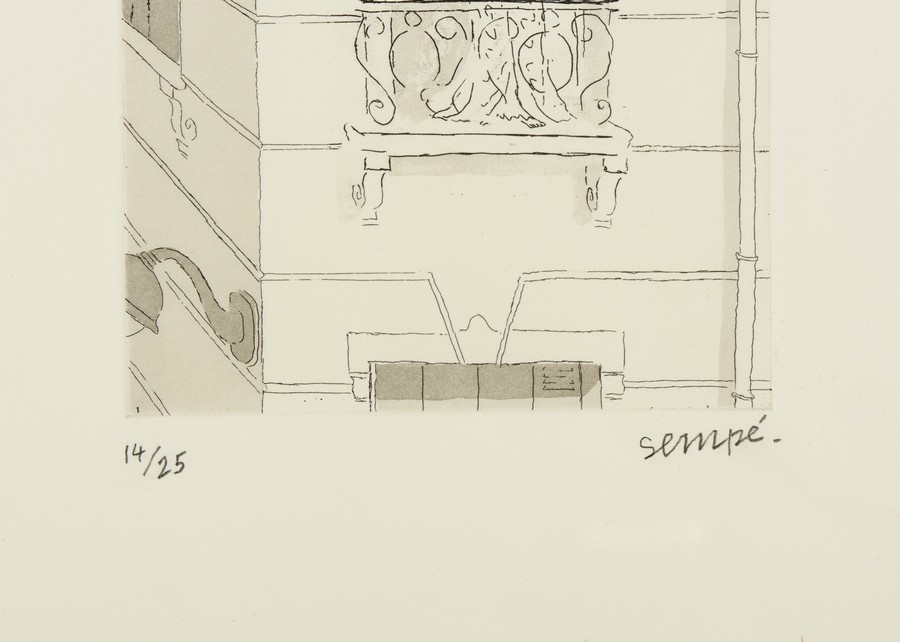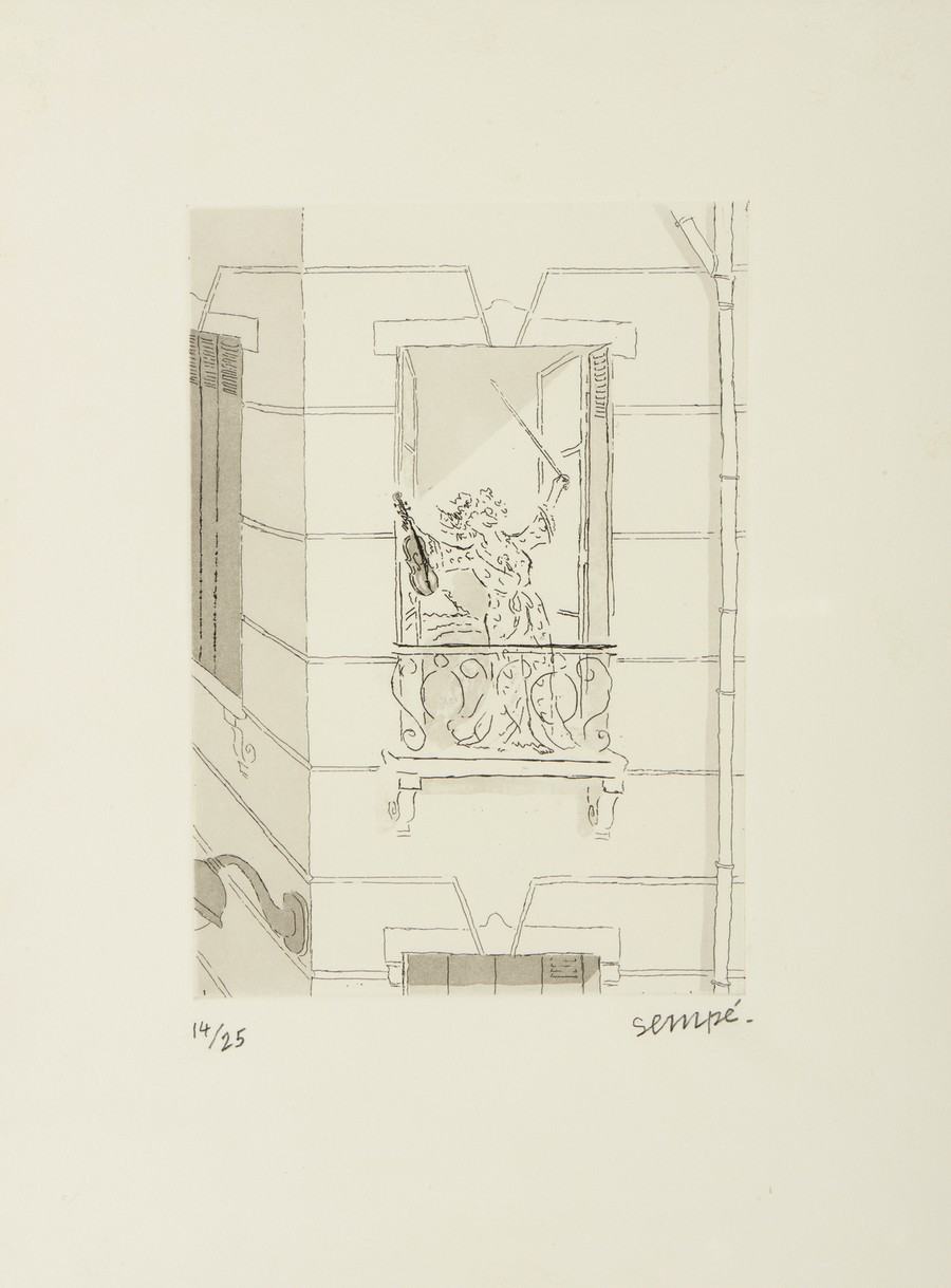 SEMPE' JEAN JACQUES (1932 - 2022) Suonatrice di violino. acquaforte. Cm 25,00 x 33,00. Esemplare 14/25
