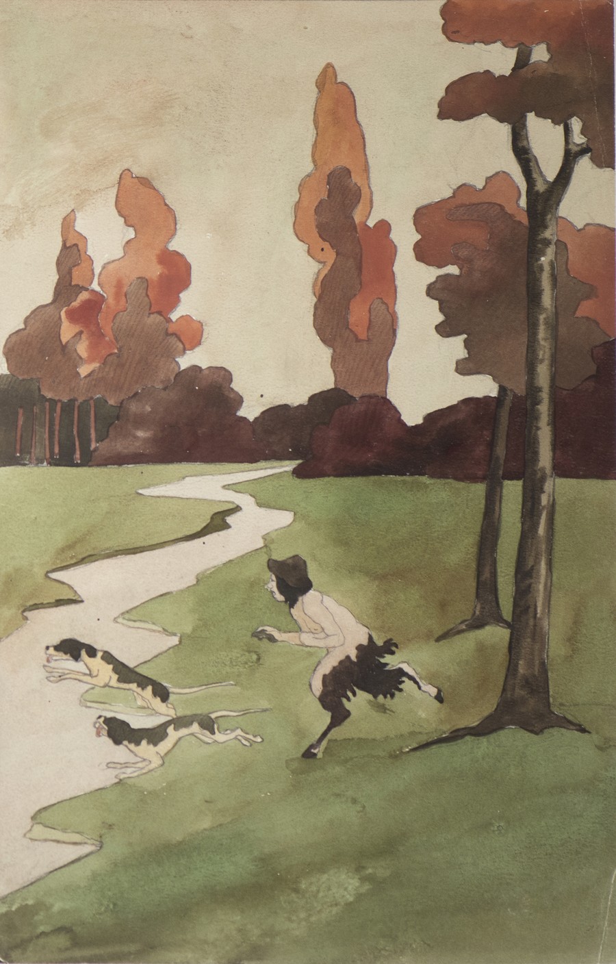 Autore non identificato Scena mitologica di caccia. acquarello su carta. Cm 23,00 x 35,00. Mancanza di firma