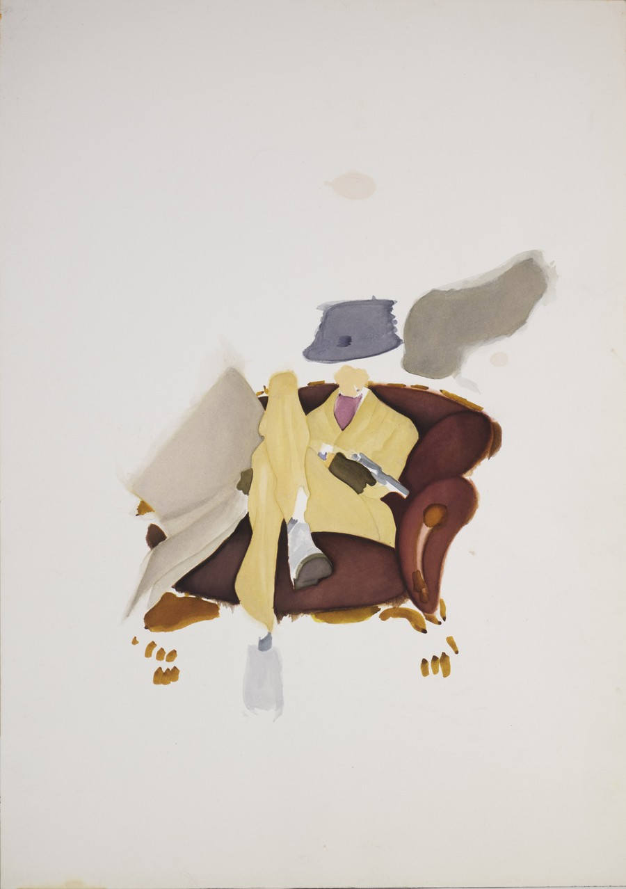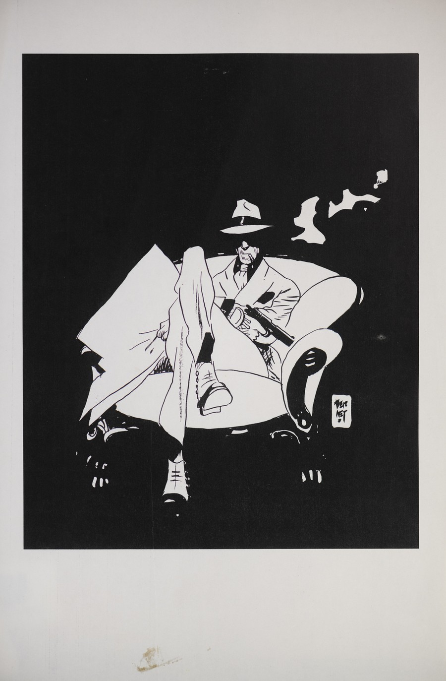 Attribuito Jordi Bernet Torpedo. 1990. Acquerello su carta. Cm 30,00 x 42,00. Rarissimo acquerello di Torpedo alias Luca Torelli, antieroe per antonomasia. Torpedo è protagonista di uno dei fumetti noir più amati e celebrati dal pubblico di tutto il mondo che rese l'artista spagnolo il maestro indiscusso di questo genere.