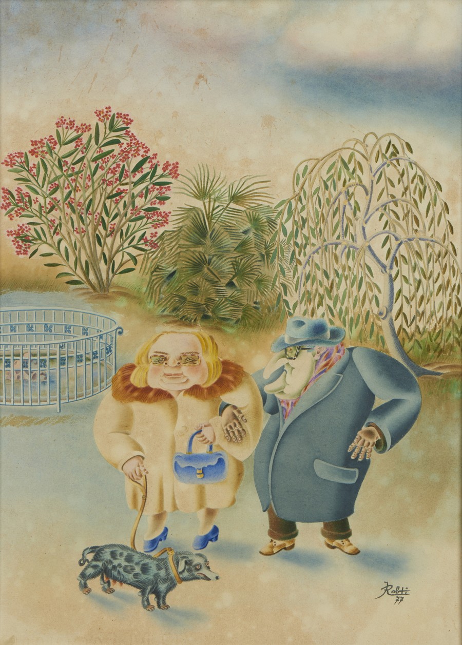 ANONIMO Senza titolo. 1977. Tecnica mista su carta Fabriano. Cm 41,00 x 55,50. Firma e anno in basso a dx