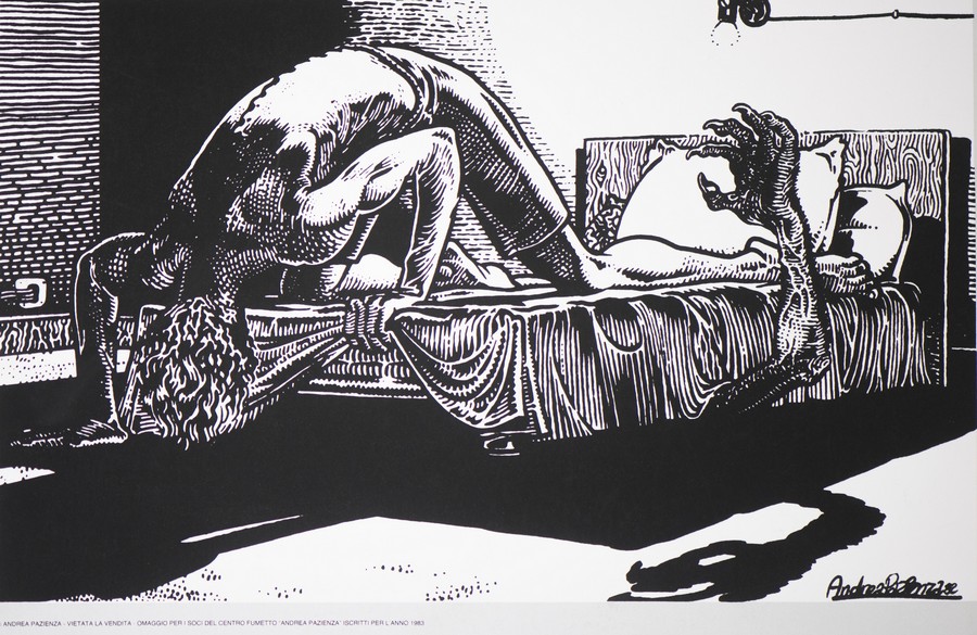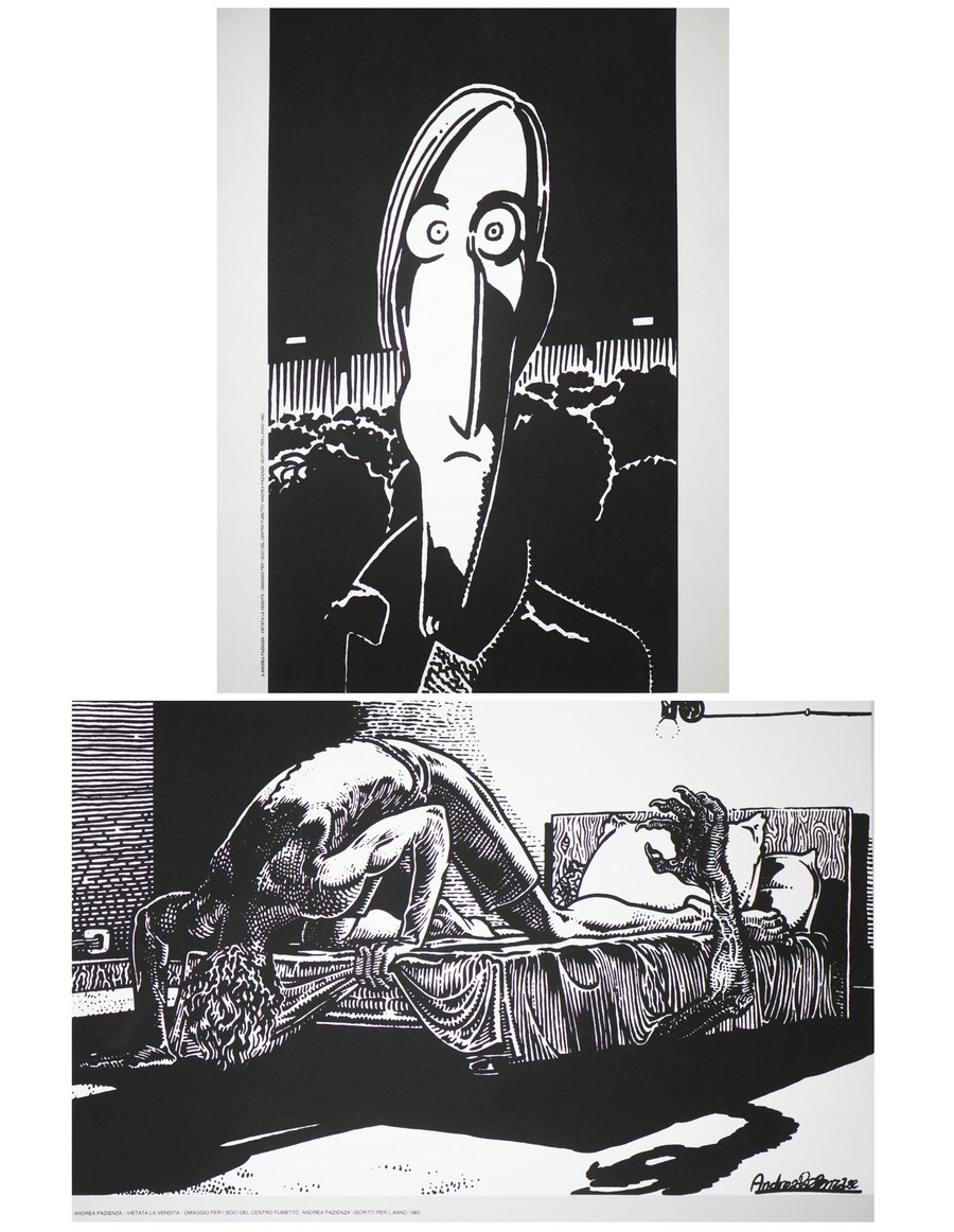 PAZIENZA ANDREA Senza titolo. 1983. Stampa su carta. Cm 38,00 x 28,00. Due rare stampe per i Soci del Centro Fumetto Andrea Pazienza