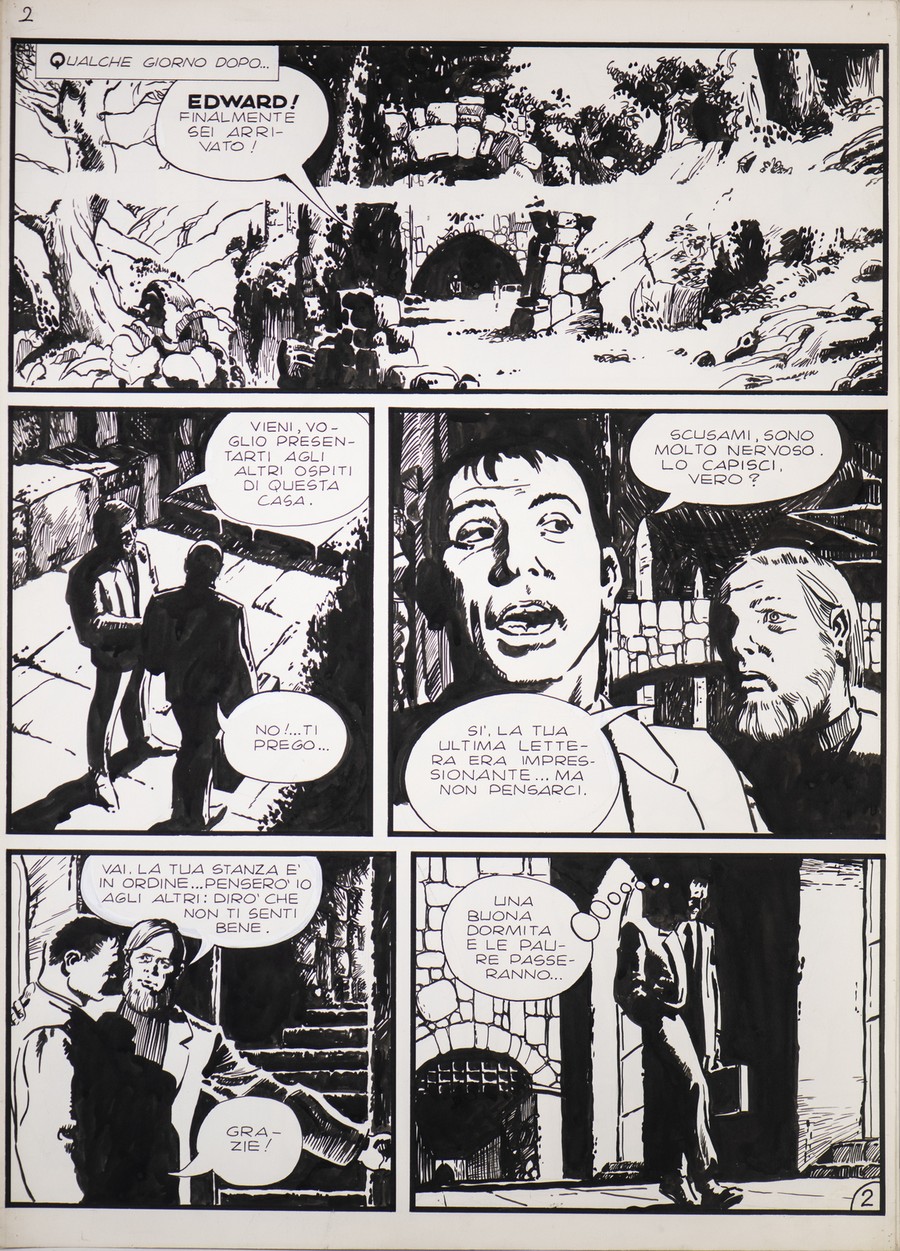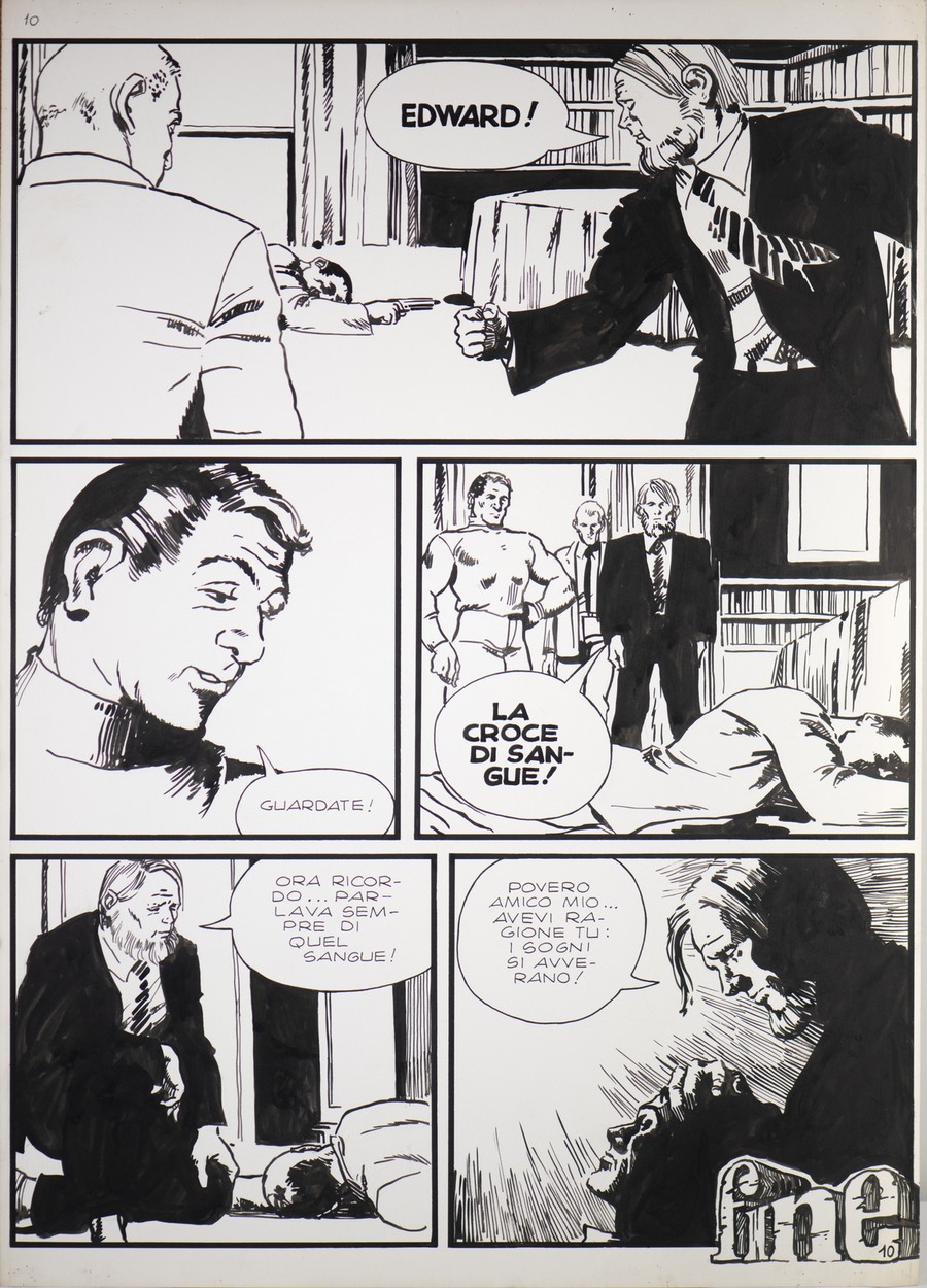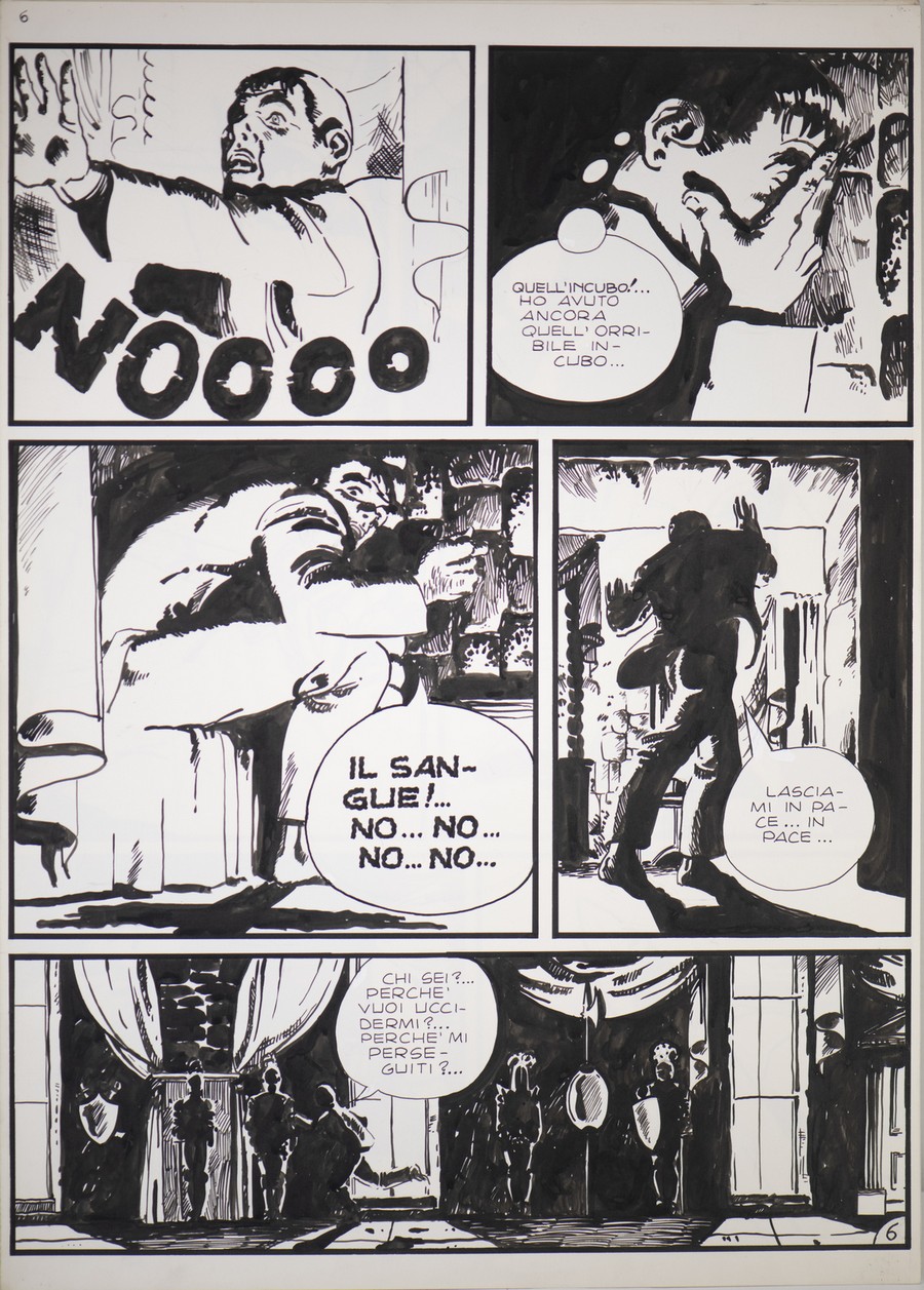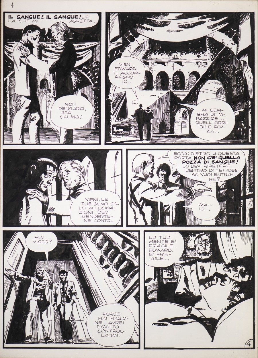 Tito Monego e Giovanni Cianti La croce di Sangue - storia per la rivista Horror n.2. 1970. China su carta. Cm 37,00 x 51,00. Tavole 7 e 8 mancanti