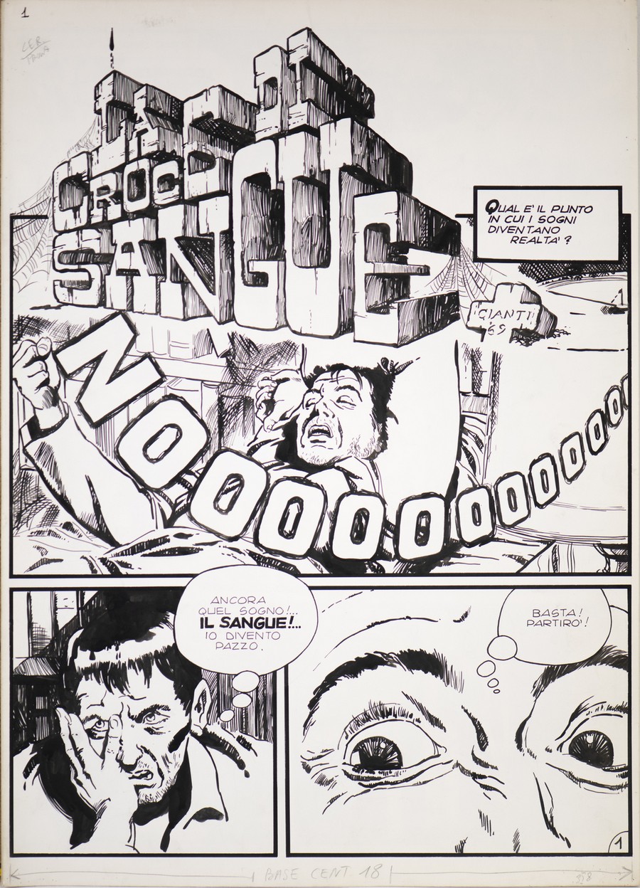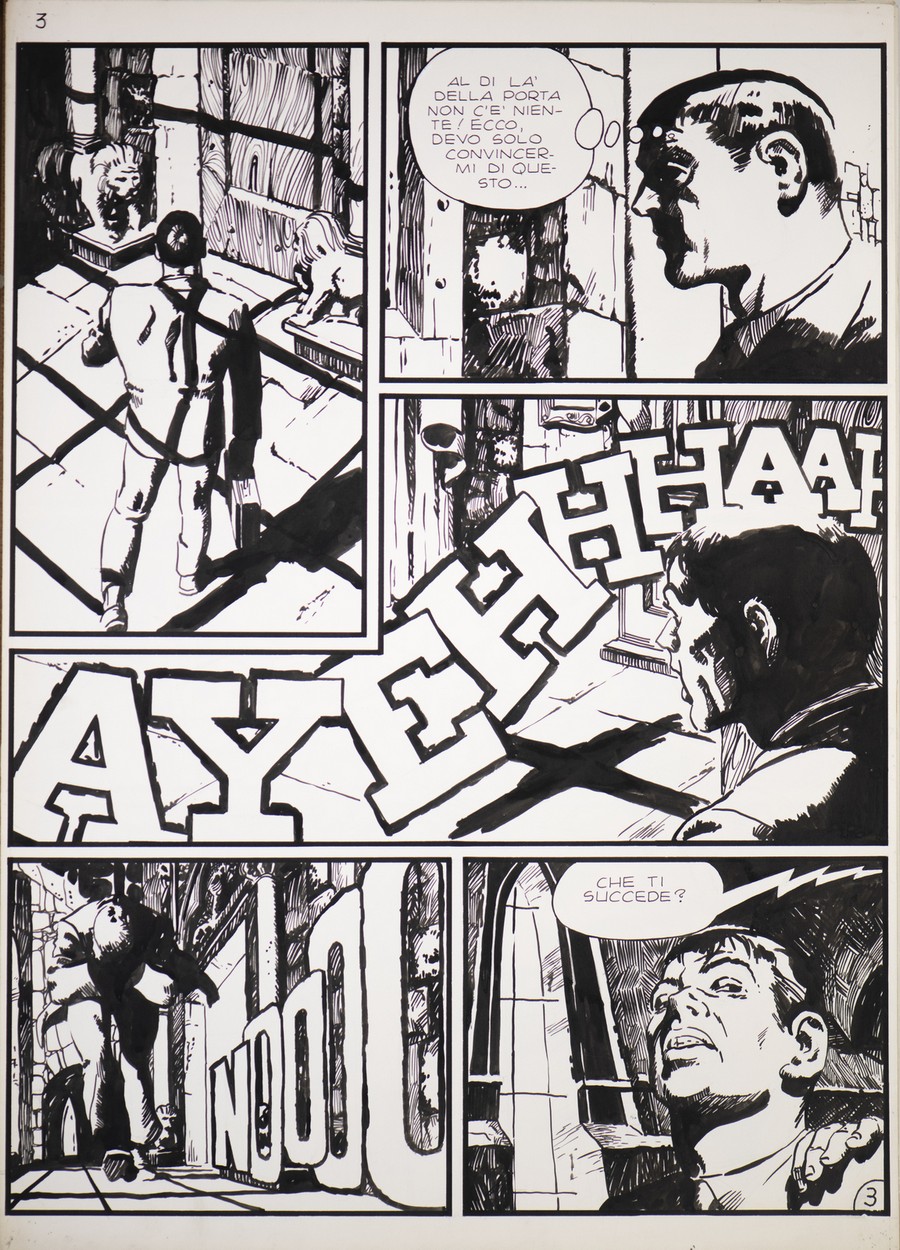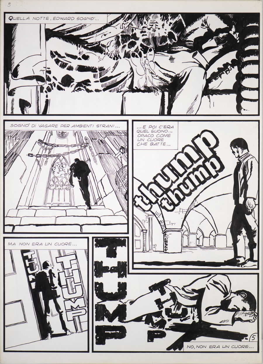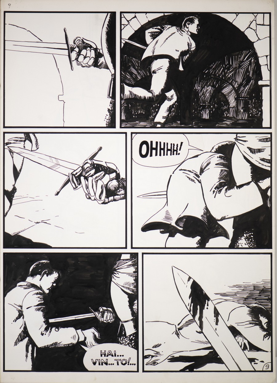Tito Monego e Giovanni Cianti La croce di Sangue - storia per la rivista Horror n.2. 1970. China su carta. Cm 37,00 x 51,00. Tavole 7 e 8 mancanti
