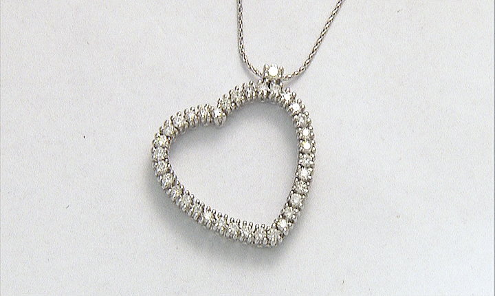 CIONDOLO. In oro bianco 18 kt a cuore con diamanti taglio brillante per tot. cts. 1,40 ca. trattenuto da fine catenina in oro bianco 18 kt.
