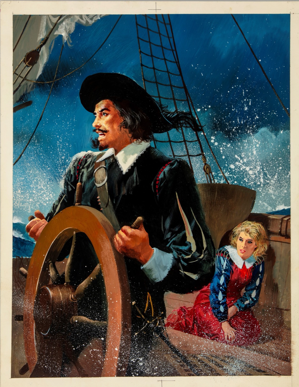 Illustrazione originale realizzata da Jacono per "Il Corsaro Nero" di Emilio Salgari, edita nella collana Grandi Classici per la Gioventù dalle Edizioni Accademia nel 1974. Firmata.