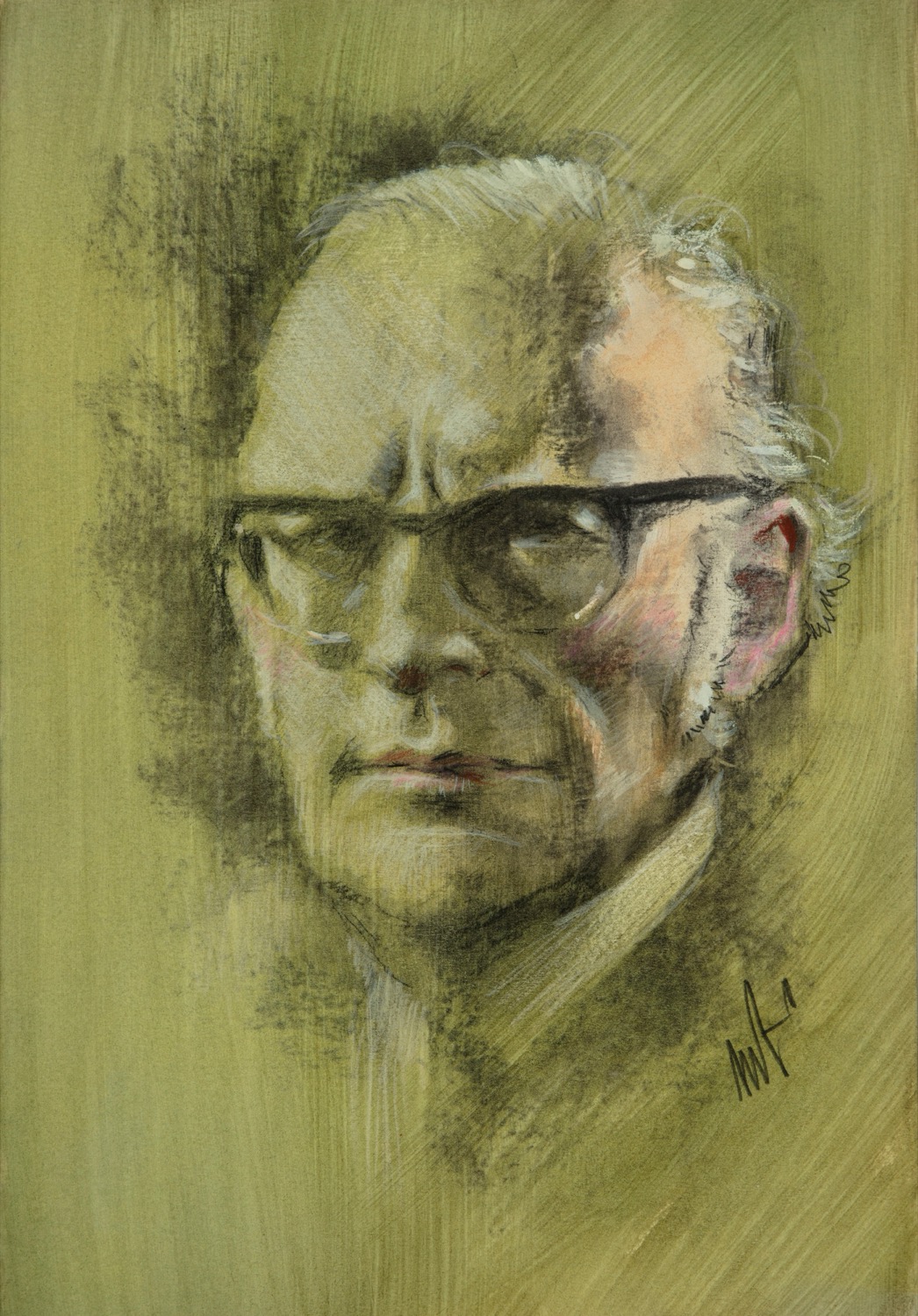 Illustrazione originale realizzata da Tempesti raffigurante il ritratto del celebre scrittore di fantascienza Arthur C. Clarke, edito su la Grande Enciclopedia della Fantascienza, edita dall‘Editoriale Del Drago nel 1980-81. Firmata.