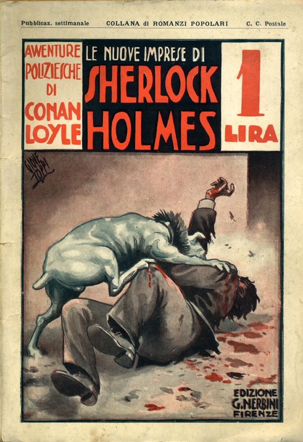 Originale di copertina realizzato da Toppi per "Le nuove imprese di Sherlock Holmes", edito da Nerbini nel 1930. Firmato.