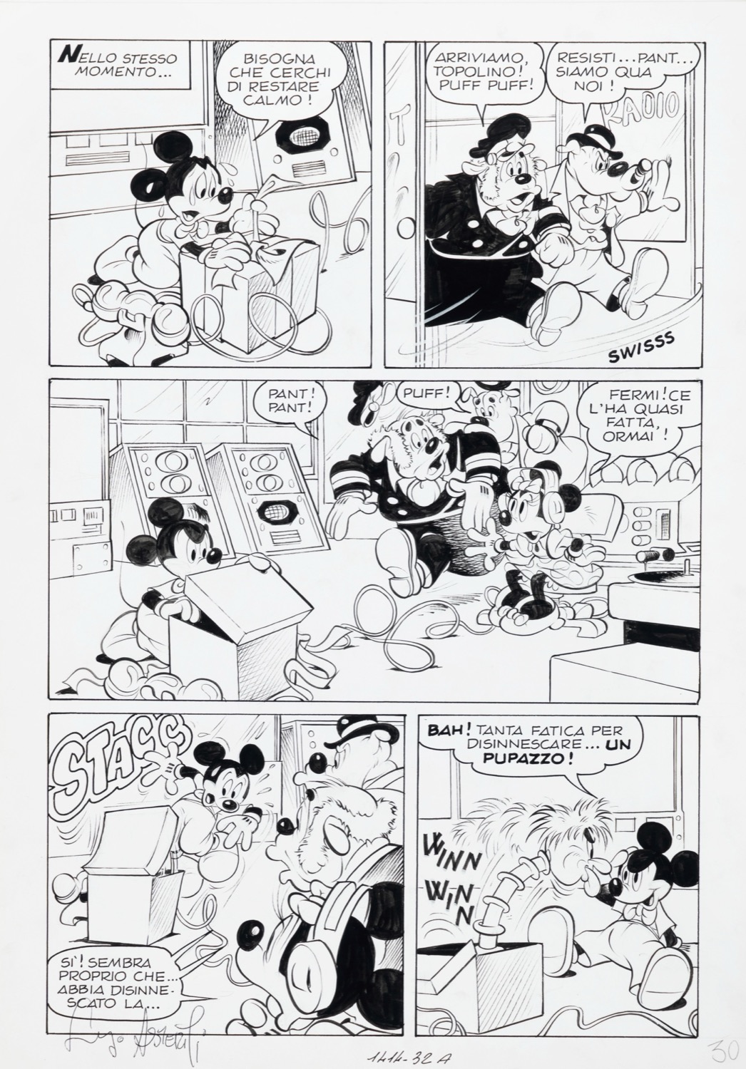 Tavola originale realizzata da Asteriti per "Topolino e le distrazioni di Minni", edita su Topolino n. 1414 a pag. 30 nel gennaio 1983. Firmata.