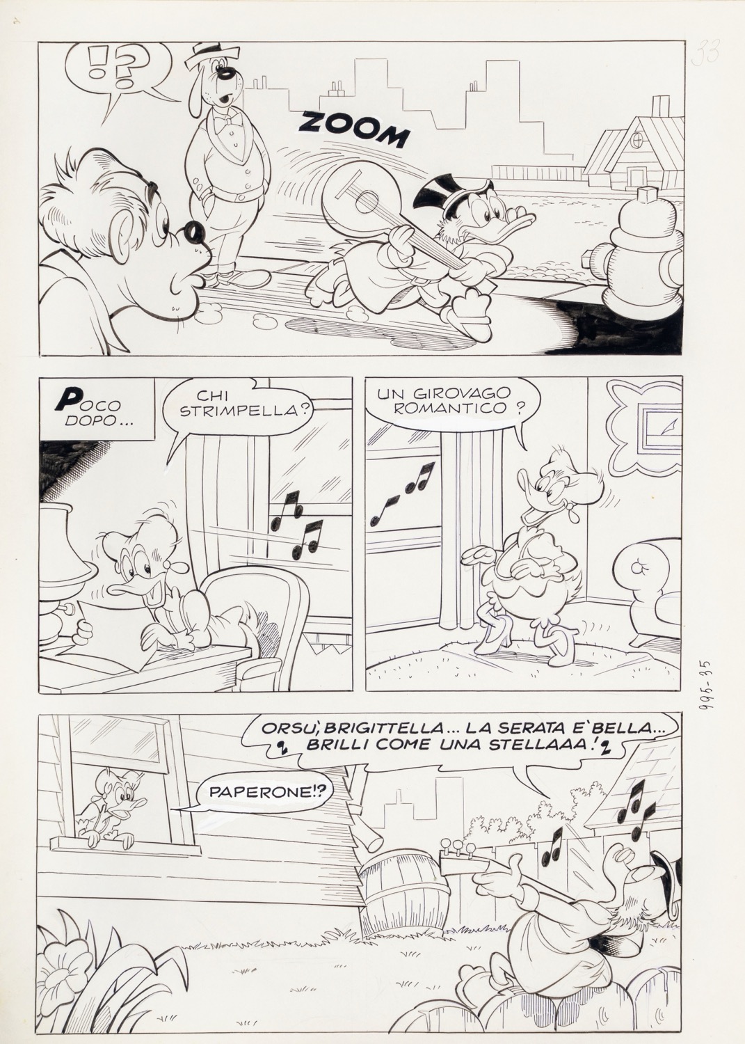 Tavola originale realizzata da Chierchini per "Zio Paperone e la bilancia di Brenno", edita su Topolino n. 995 a pag. 33 nel dicembre 1974. Lievi pieghe.