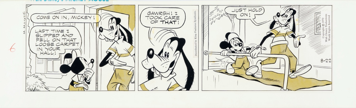 Striscia giornaliera del 22/08/1970 per "Mickey Mouse". Un bellissimo ritratto dell‘indissolubile amicizia tra lo stralunato Pippo e Topolino.