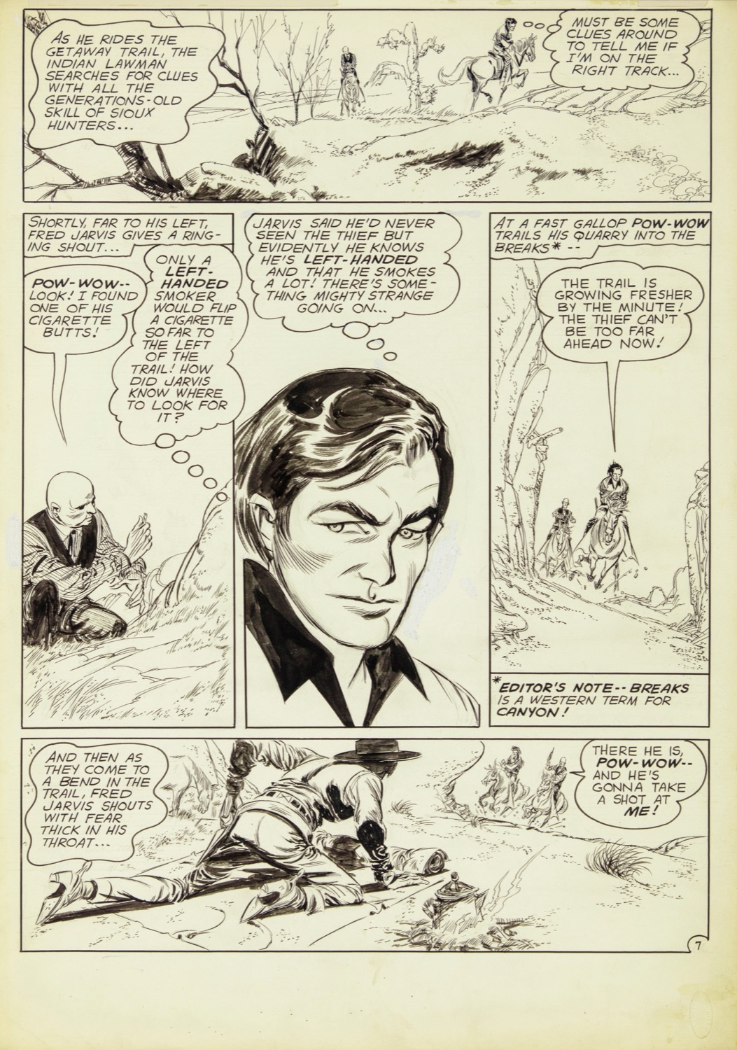 Tavola originale realizzata da Infantino per un'avventura di Pow-Wow Smith, detective e sceriffo Sioux della piccola città di Elkhorn, pubblicato per la prima volta su Detective Comics nel 1949 e successivamente su Western Comics dalla DC.