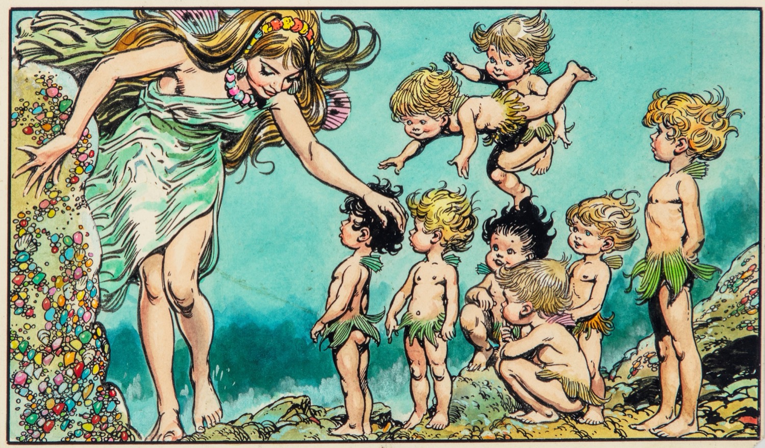 Vignetta originale realizzata da Blasco per "The Water Babies", adattamento del romanzo per bambini di Charles Kingsley, edita per la prima volta sul magazine inglese Once Upon a Time n. 51 dalla casa editrice IPC il 31 gennaio 1970.