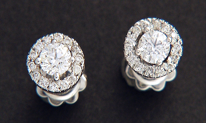 COPPIA DI ORECCHINI. In oro bianco 18 kt perno e farfalla con due diamanti taglio brillante per tot. cts. 0,70 ca. disposti al centro entro cornici in diamanti taglio brillante per tot. ct. 0,30 ca.