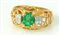 ANELLO. In oro giallo 18 kt montatura realizzata in filo d'oro liscio con al centro smeraldo taglio rettangolare a contorno ottagonale di cts. 1,00 ca. e diamanti taglio huit-huit ai lati per tot. cts. 0,15 ca.