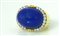 ANELLO. In oro giallo 18 kt montatura costolata con al centro grande lapislazzulo taglio ovale cabochon entro cornice in diamanti taglio brillante per tot. cts. 1,10 ca.