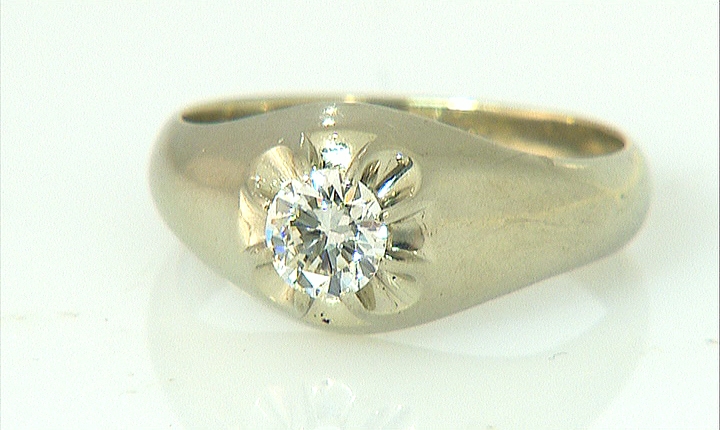 ANELLO. In oro bianco 18 kt centrato da diamante taglio brillante disposto a solitario di cts. 0,75 ca. (prob. colore I purezza VVS) entro castone a otto griffes.
