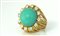ANELLO. In oro giallo 18 kt montatura realizzata a filo ritorto alternato a settori incisi con al centro turchese taglio rotondo cabochon entro contorno in diamanti taglio brillante per tot. cts. 1,90 ca.