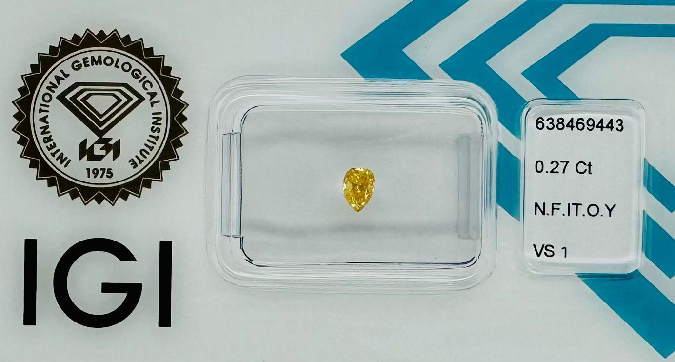 DIAMANTE NATURAL POLISHED 0,27 CARATI GIALLO ARANCIO - PUREZZA VS1 - CERTIFICATO IGI - EY40701 - 7 - COMMISSIONE D’ASTA 25%