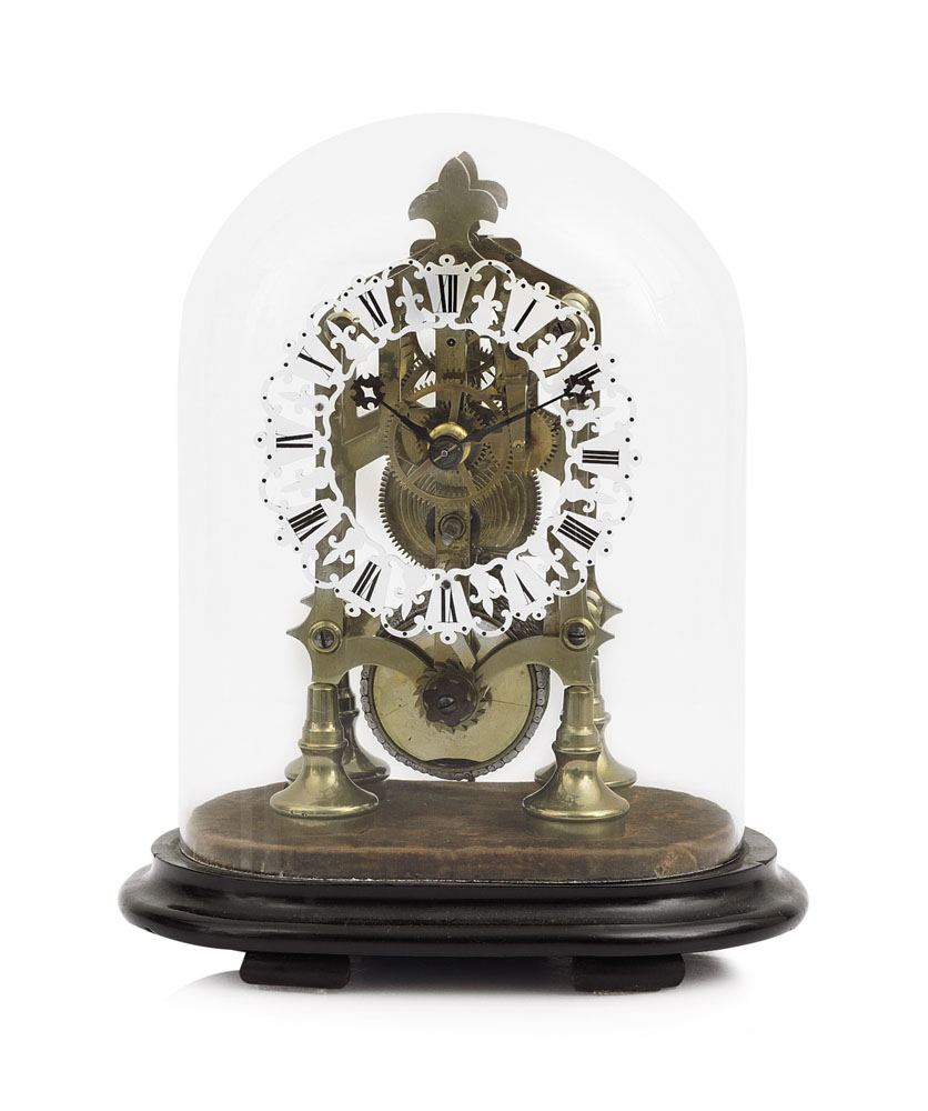 ANONIMO INGLESE DEL XIX SECOLO PENDOLA DA TAVOLO IN OTTONE SCHELETRATA, XIX...