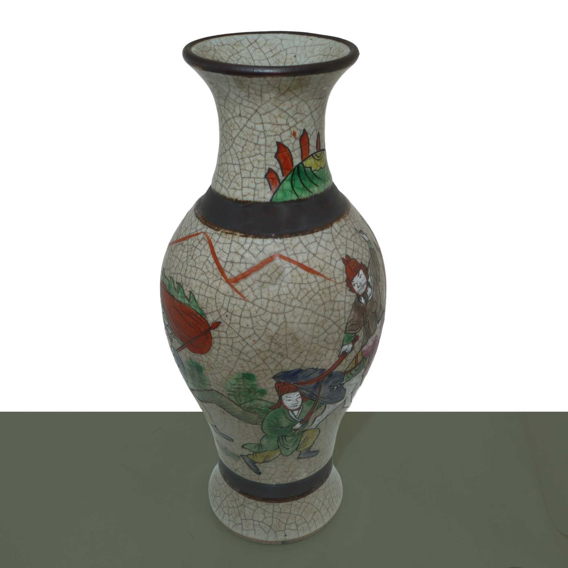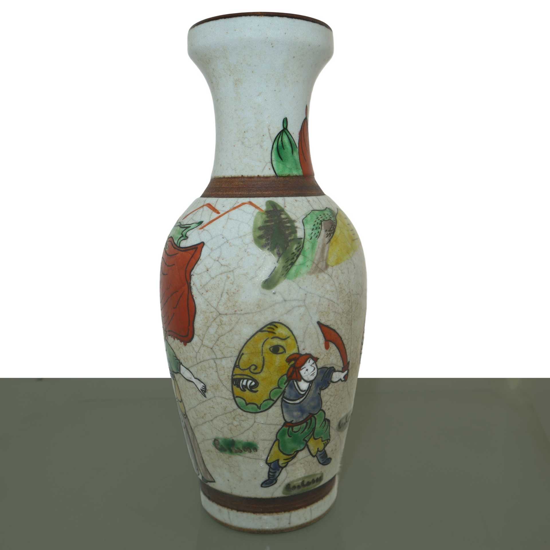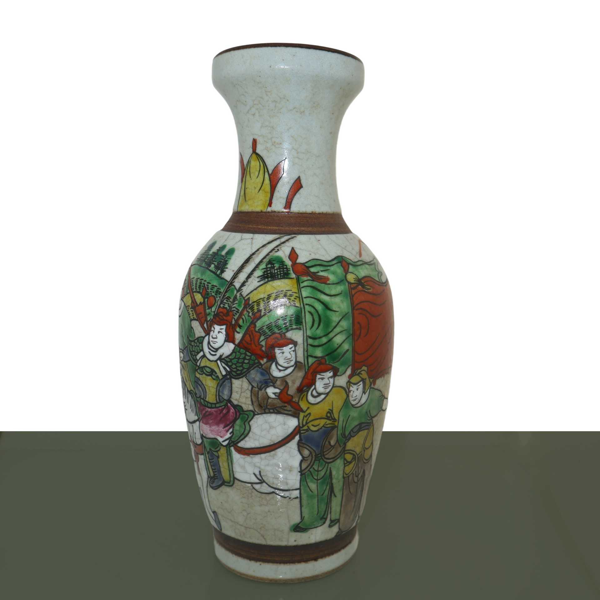 Coppia di vasi con decoro policromo raffigurante soldati, Qing dinastia, 19° secolo. , h cm 24.4 x L cm 10.5