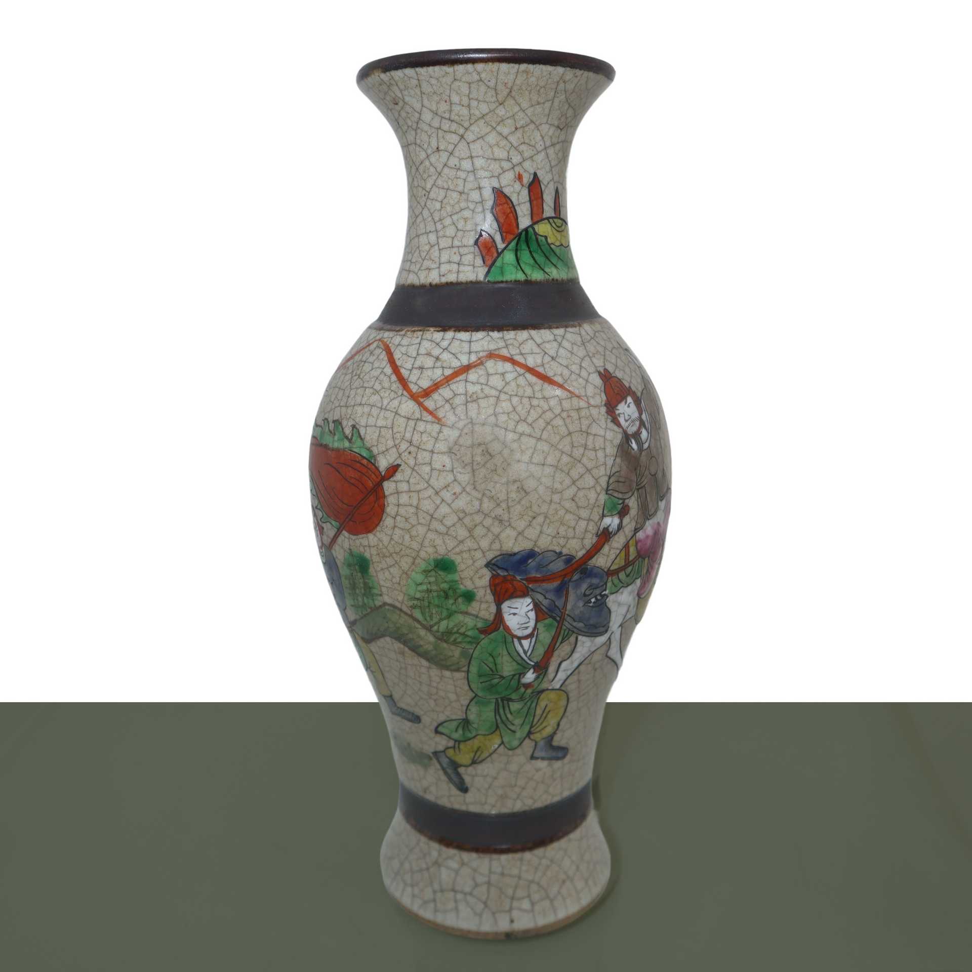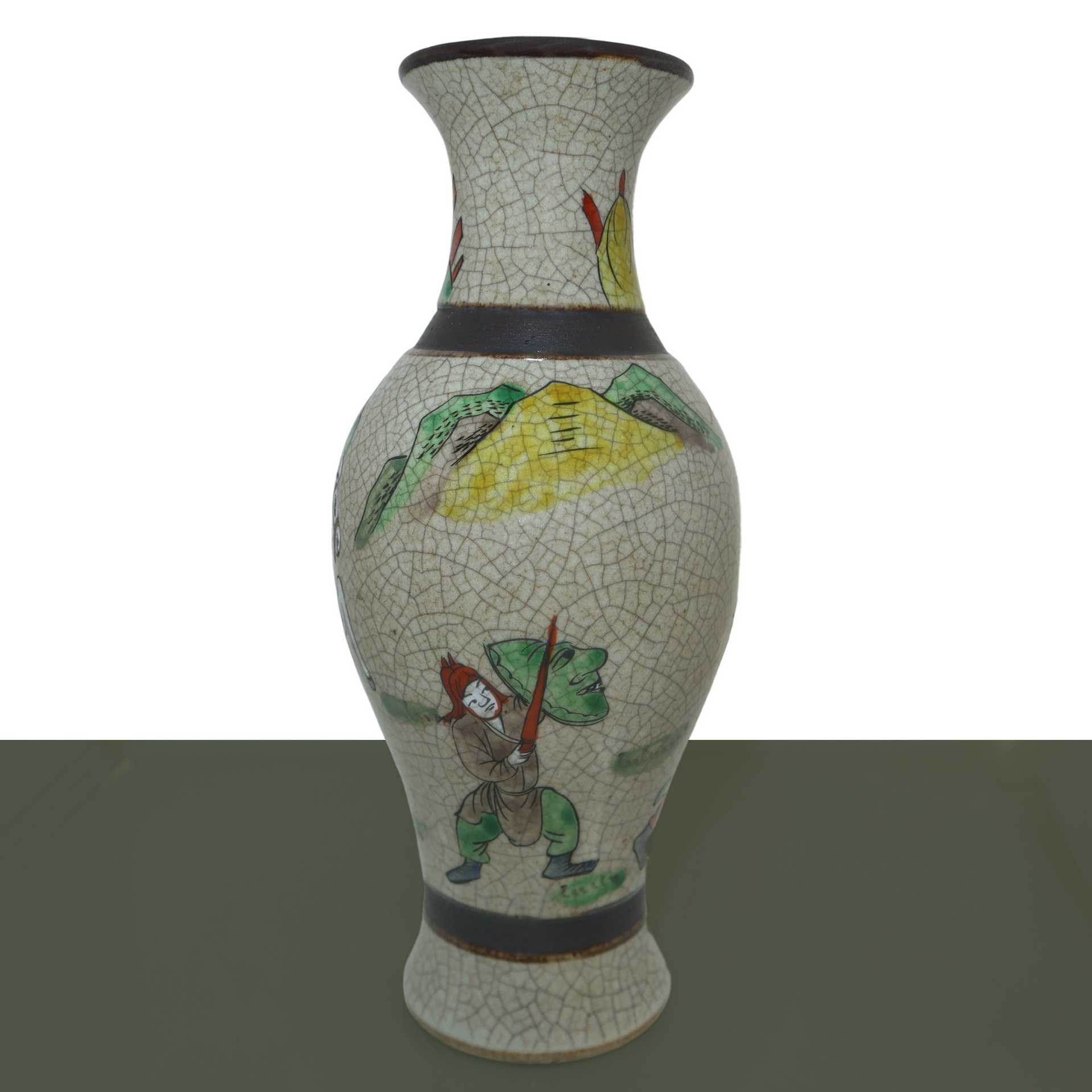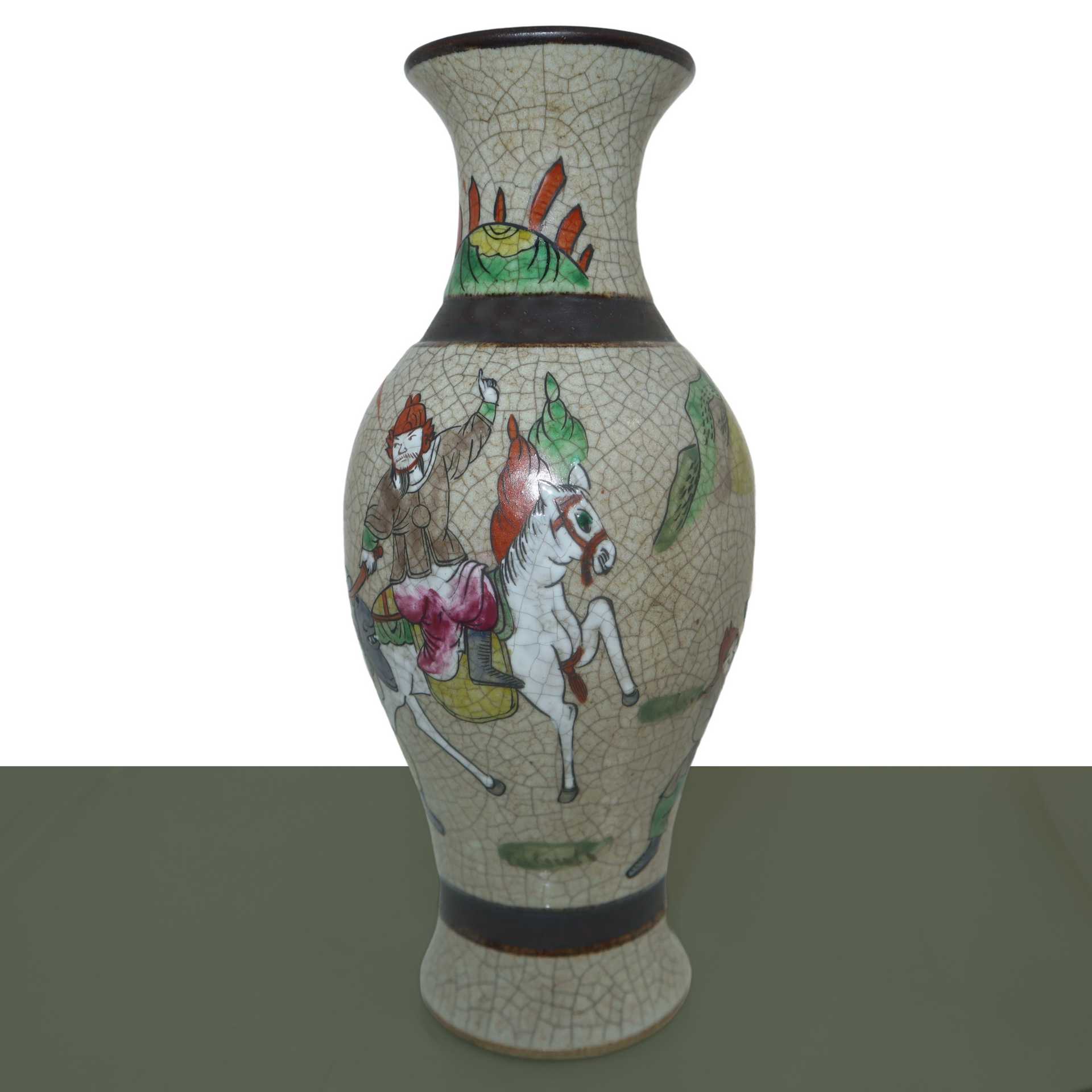 Coppia di vasi con decoro policromo raffigurante soldati, Qing dinastia, 19° secolo. , h cm 24.4 x L cm 10.5