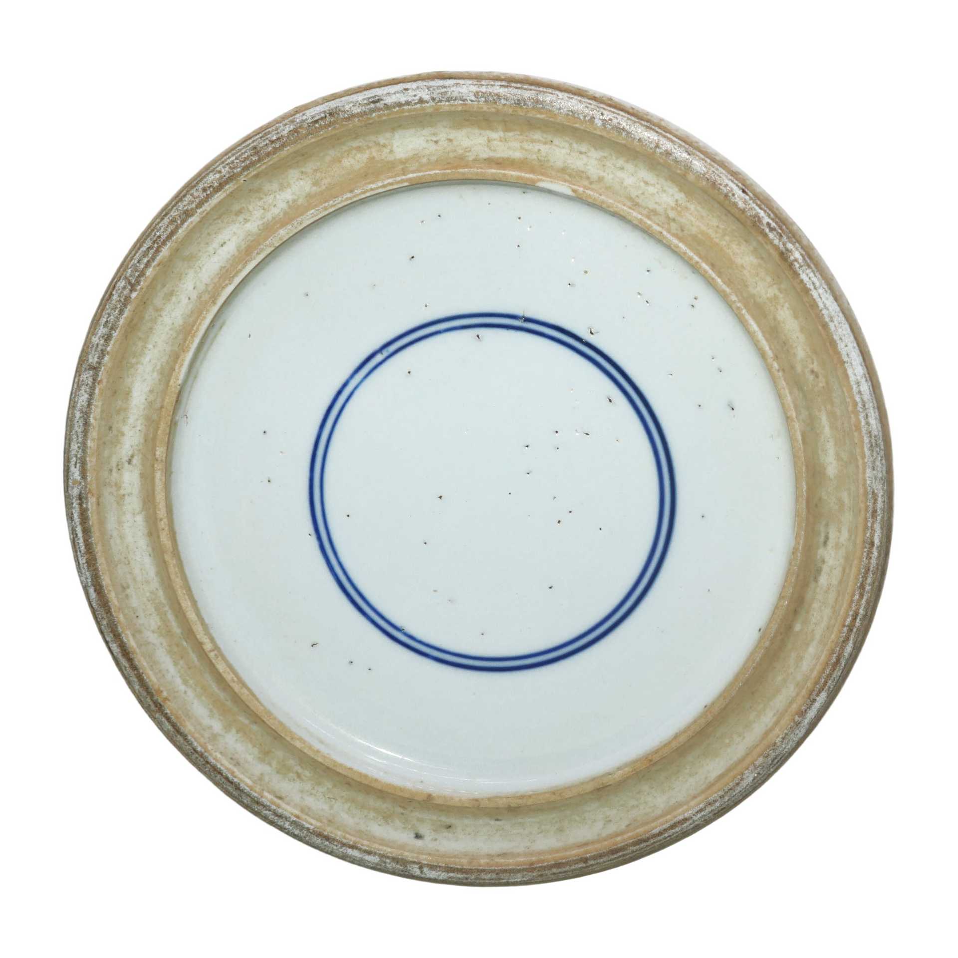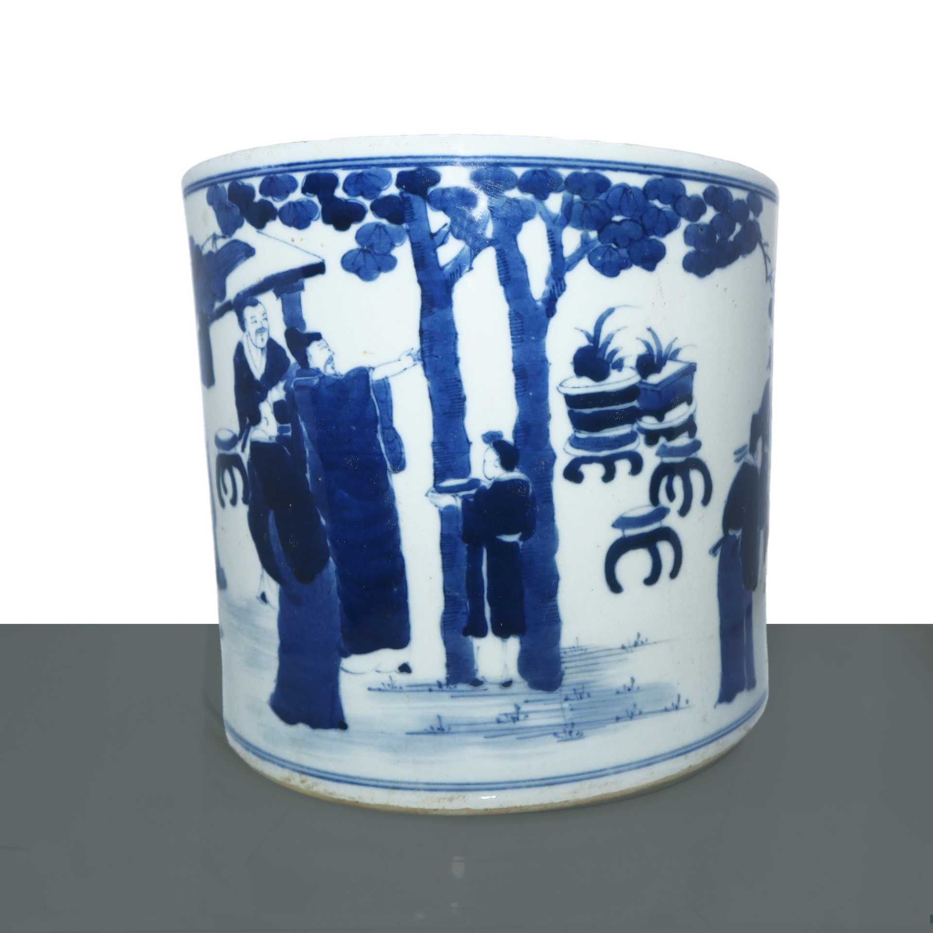 Portapenne cinese in porcellana smaltata nei toni del bianco e blu, Qing dinastia h 16.5 cm, diametro 18.4 cm