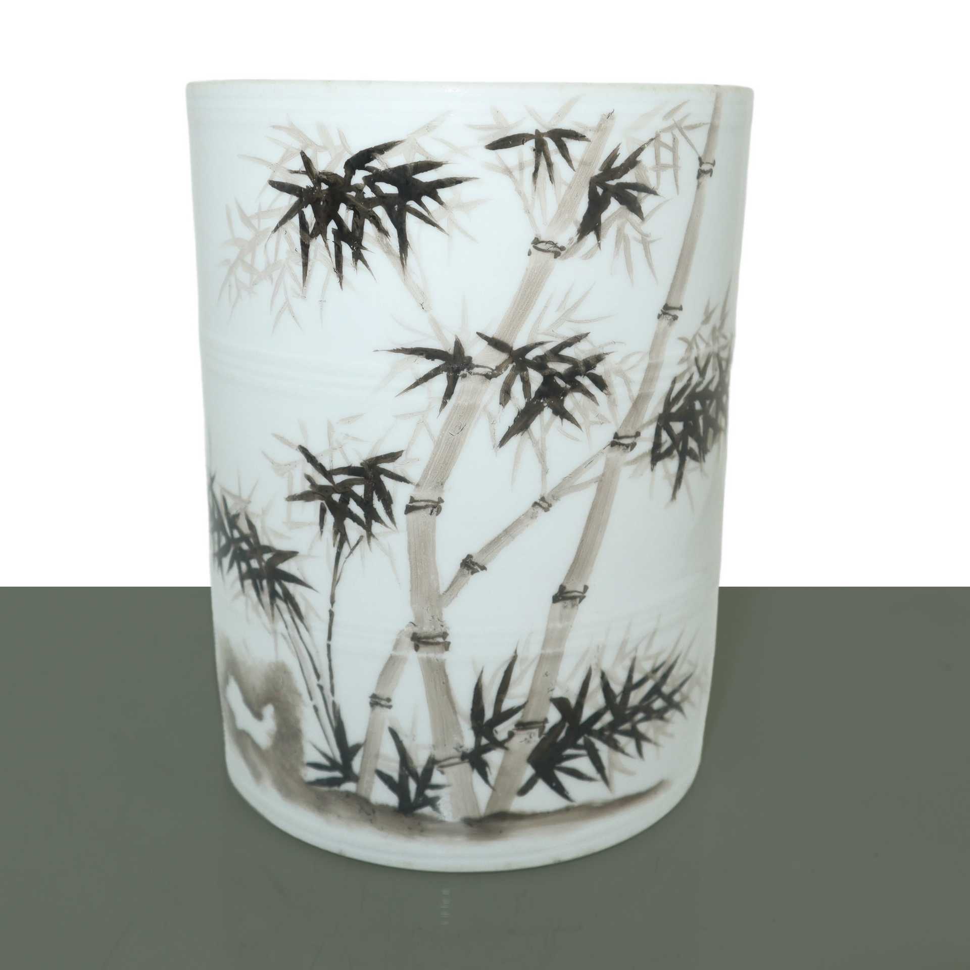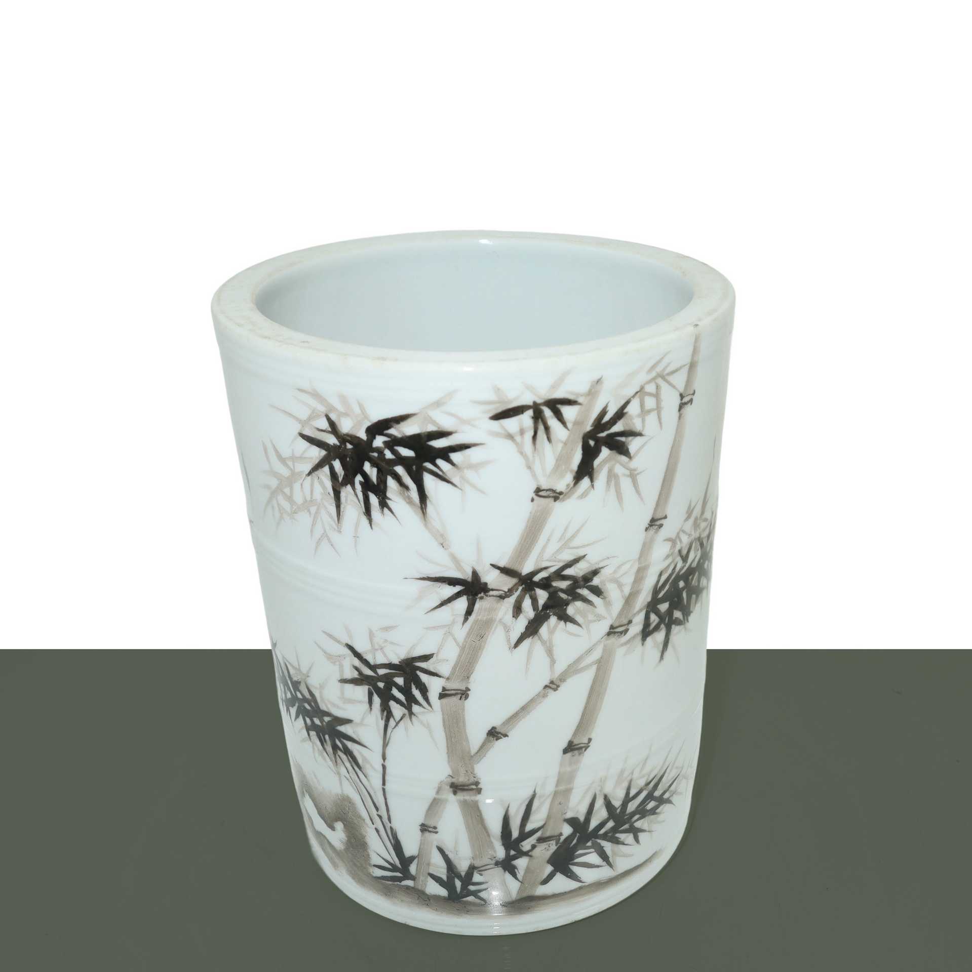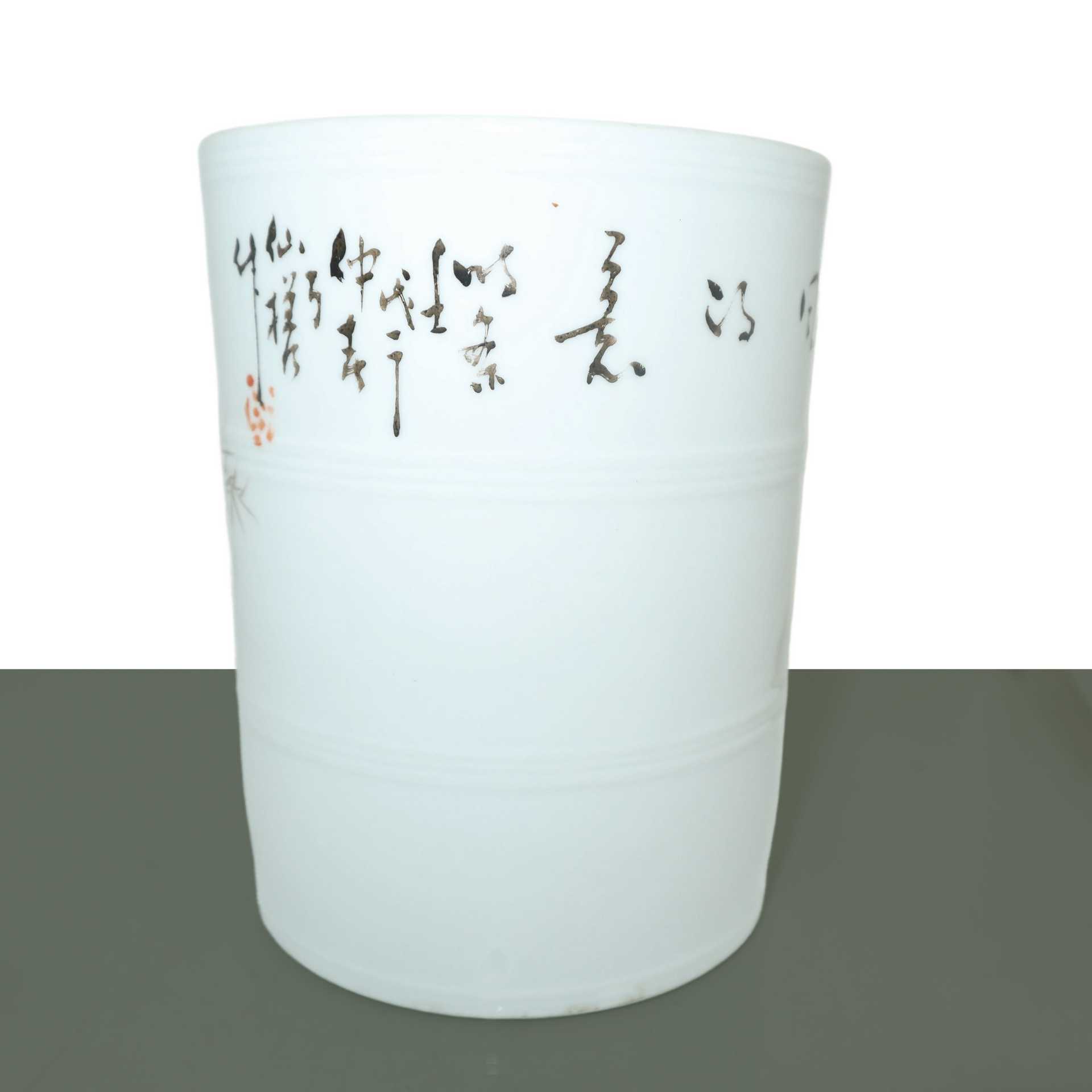 Portapenne cinese nei toni bianco con iscrizioni e decori, 19°/20° secolo 14.4 h x 12.2 cm