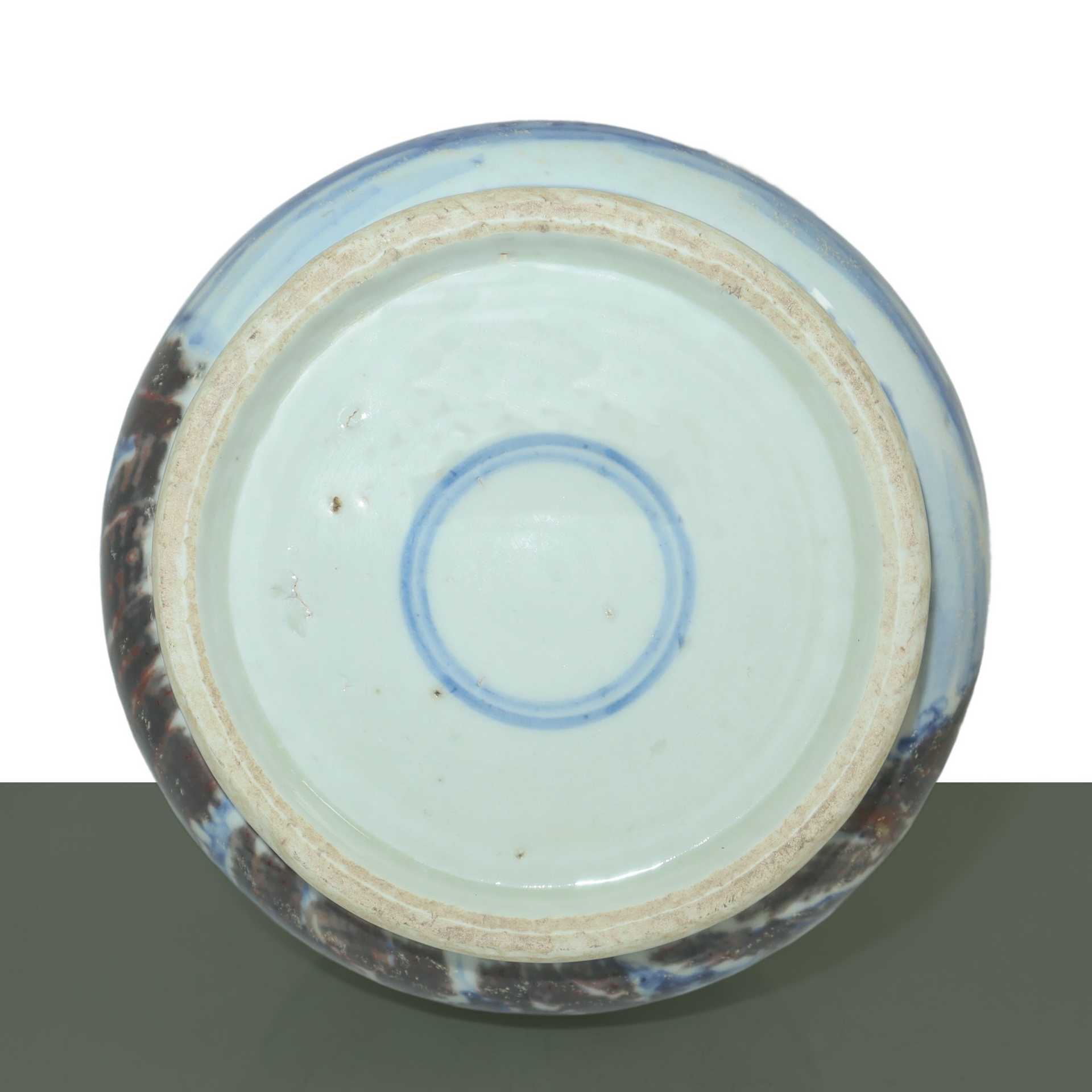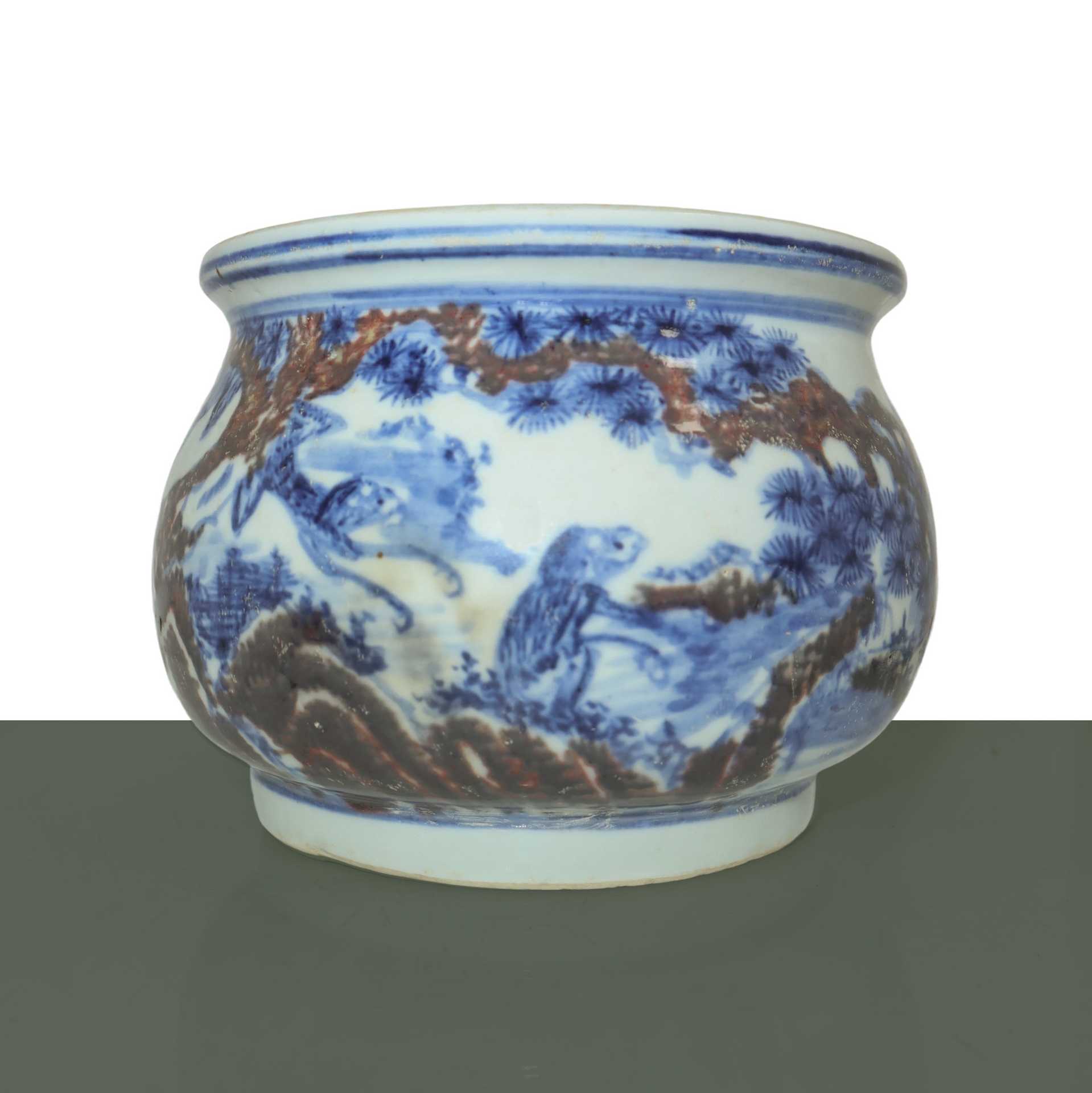 Bruciatore di incenso nei toni blu e bianco con figure, Qing dinastia, 19° secolo. , h cm 11 x 16