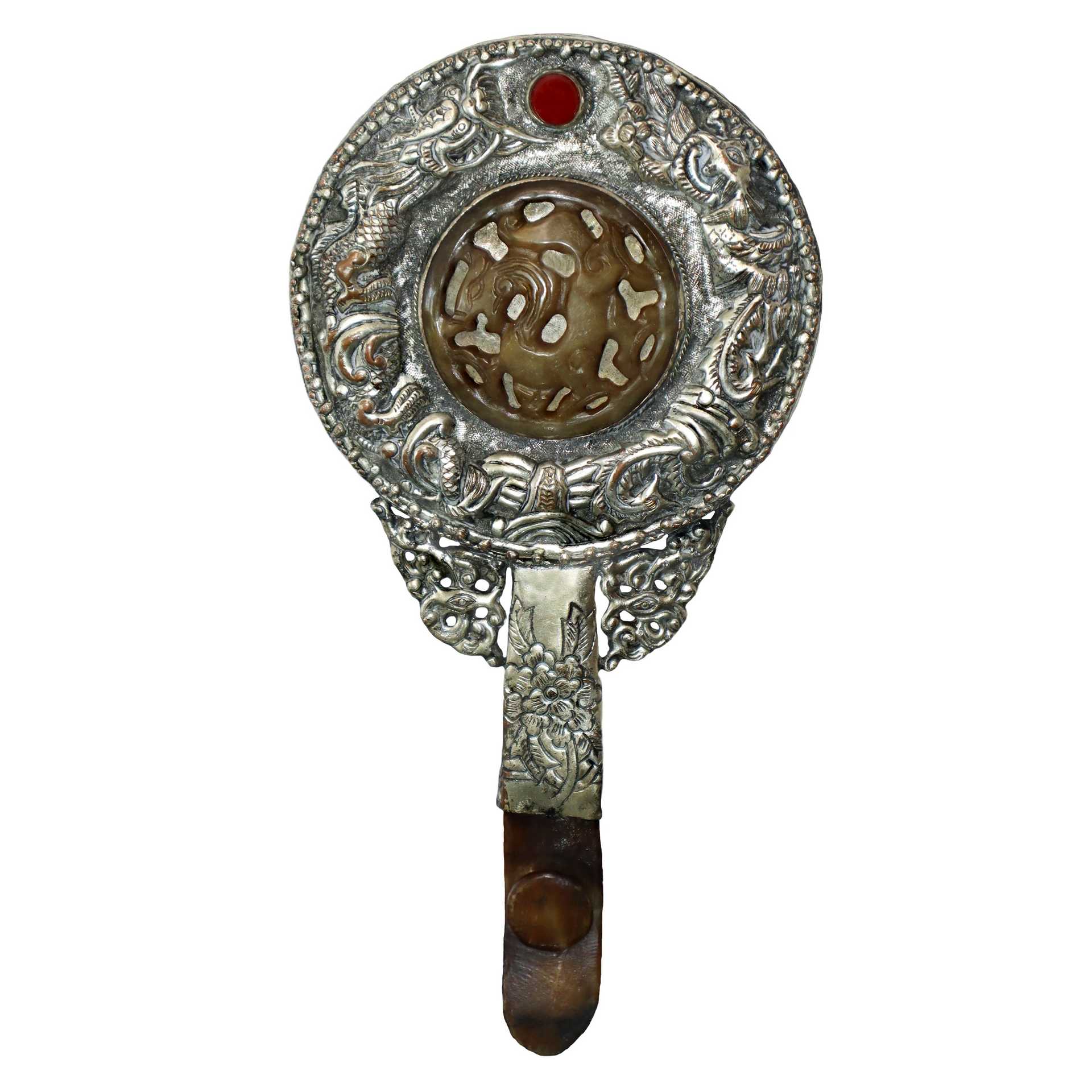 Specchio con giada nefrite intarsiata , risalente alla dinastia Qing, 19° secolo