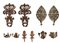 SEI COPPIE DI APPLIQUE IN METALLO, XIX-XX SECOLO, di diversa forma e decoro; difetti e mancanze.