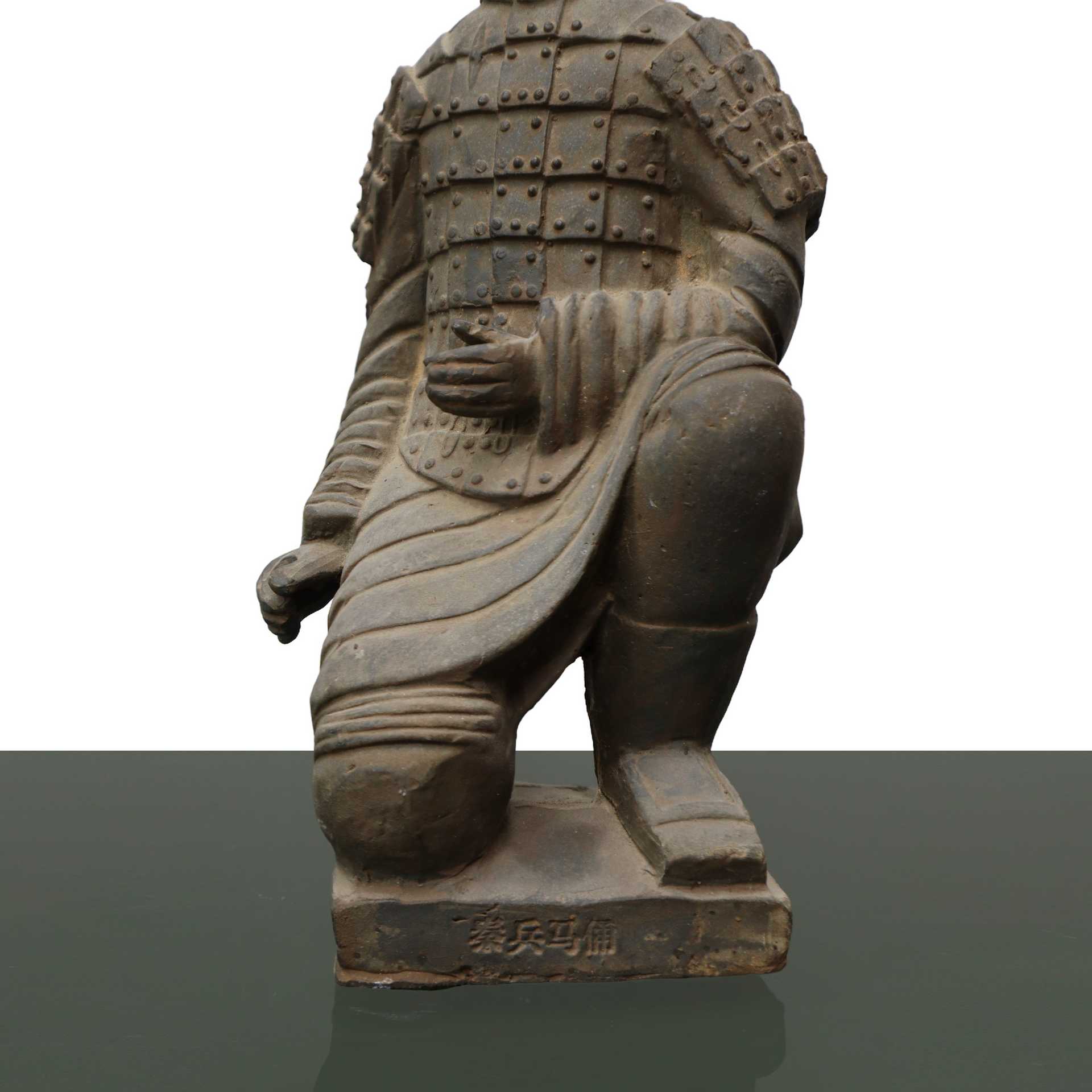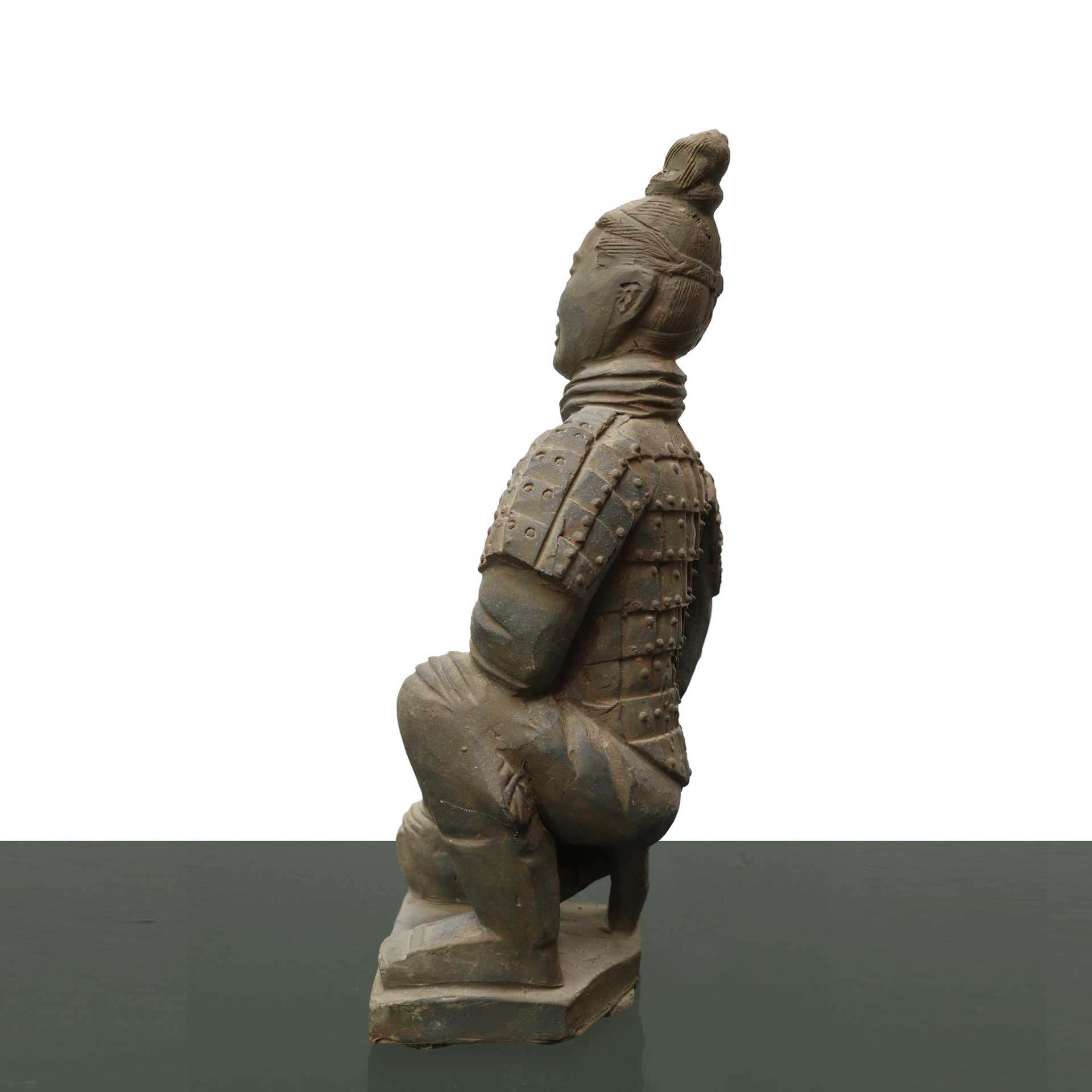 Statua guerriero cinese dell'imperatore , h cm 28x12 Guerriero cinese inginocchiato. Incisioni con caratteri cinesi ala base. Manca l'arma che regge con le due mani.