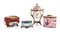 OGGETTISTICA VARIA DUE SCATOLE IN PORCELLANA E DUE IN METALLO DECORATO A...