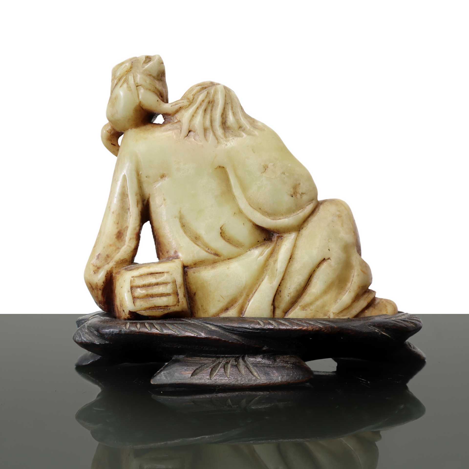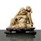 Buddha che ride in marmo , h cm 7.5x9 - con base , h cm 9x10 Scultura di Buddha sorridente in marmo con animale sulla spalla sinistra. Incisione di caratteri orientali alla base. Base in legno.