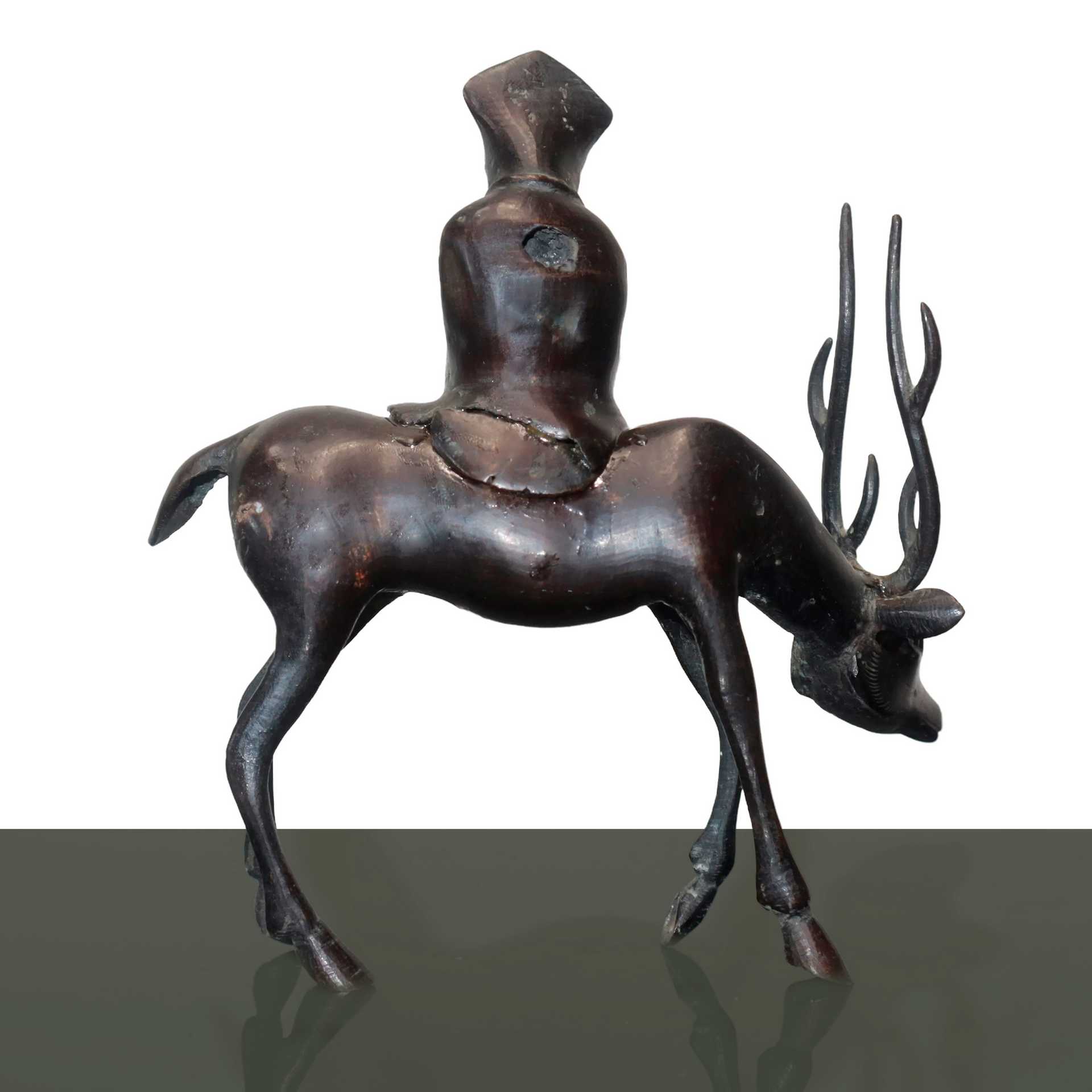 Lotto 134 | Anziano seduto su cervo, scultura in bronzo , primi 20° secolo