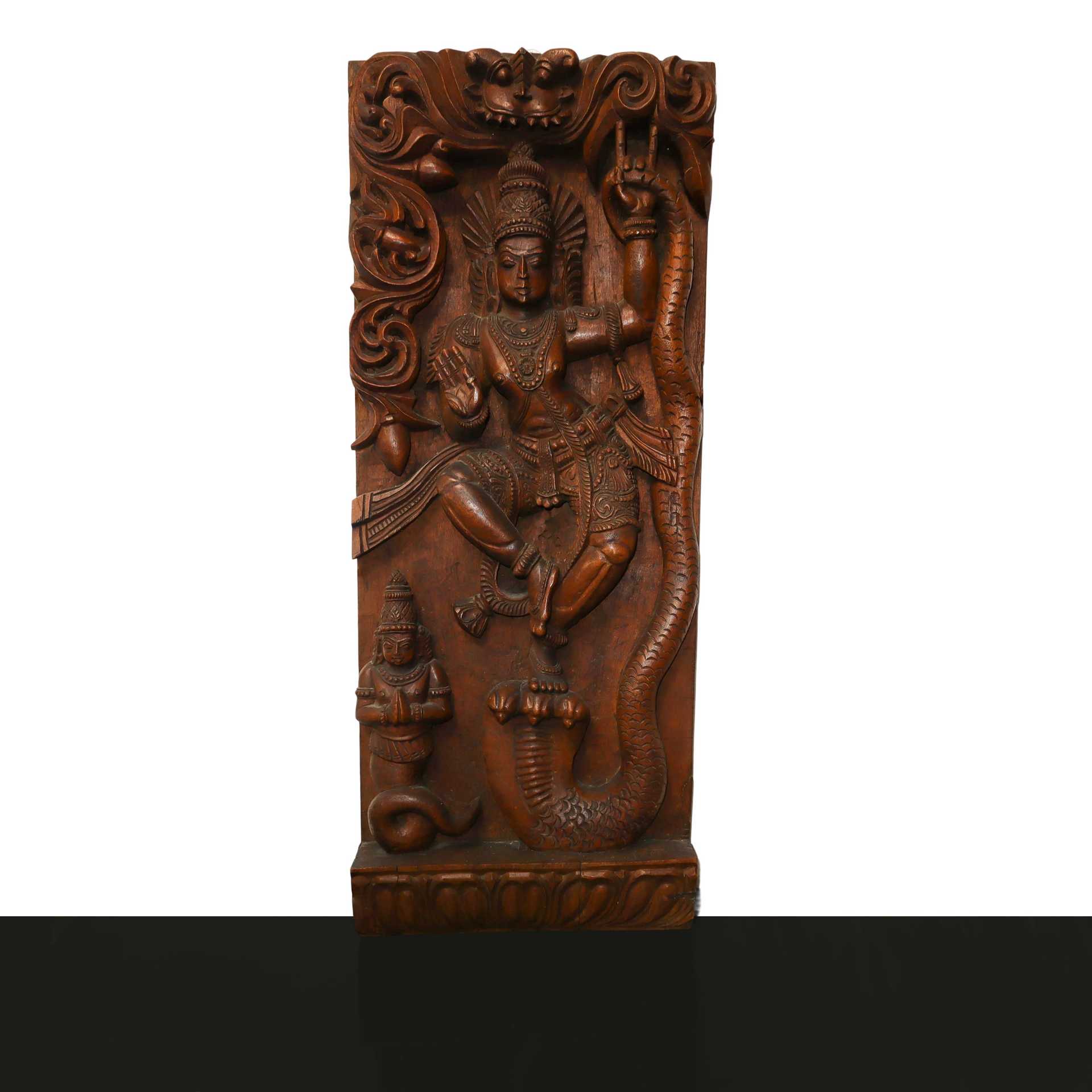Lotto 144 | Pannello ligneo scolpito a mezzotondo raffigurante divinità indiana