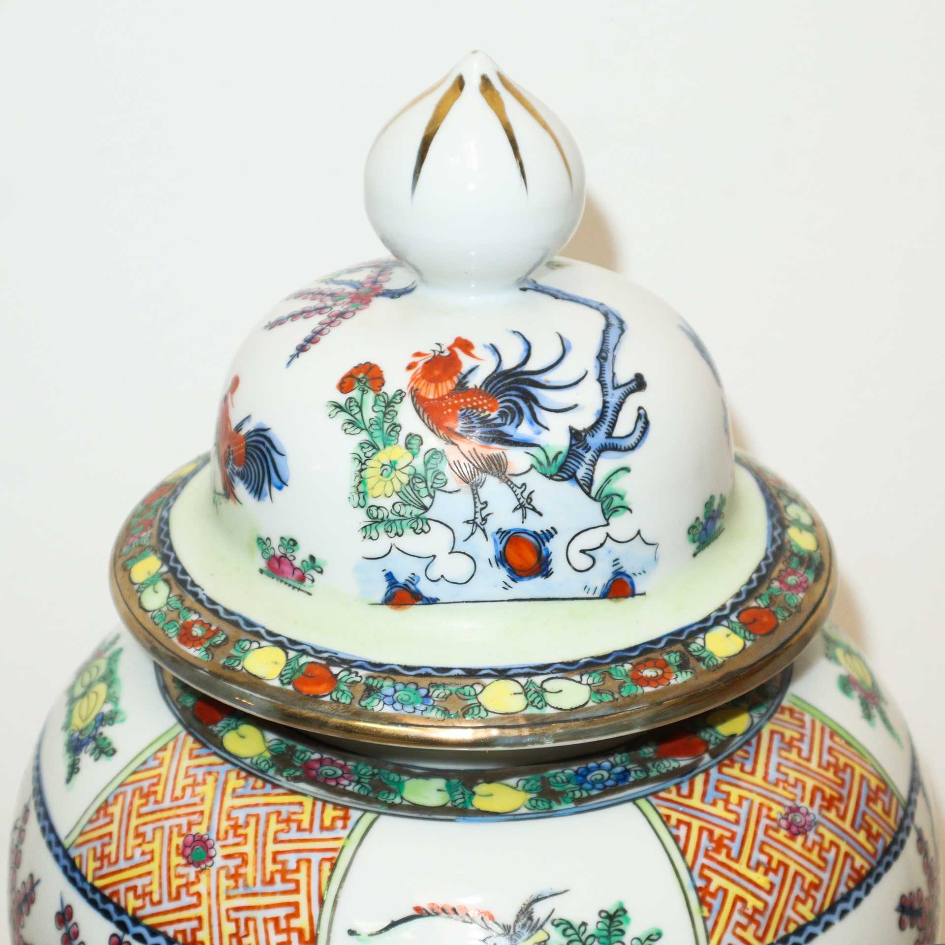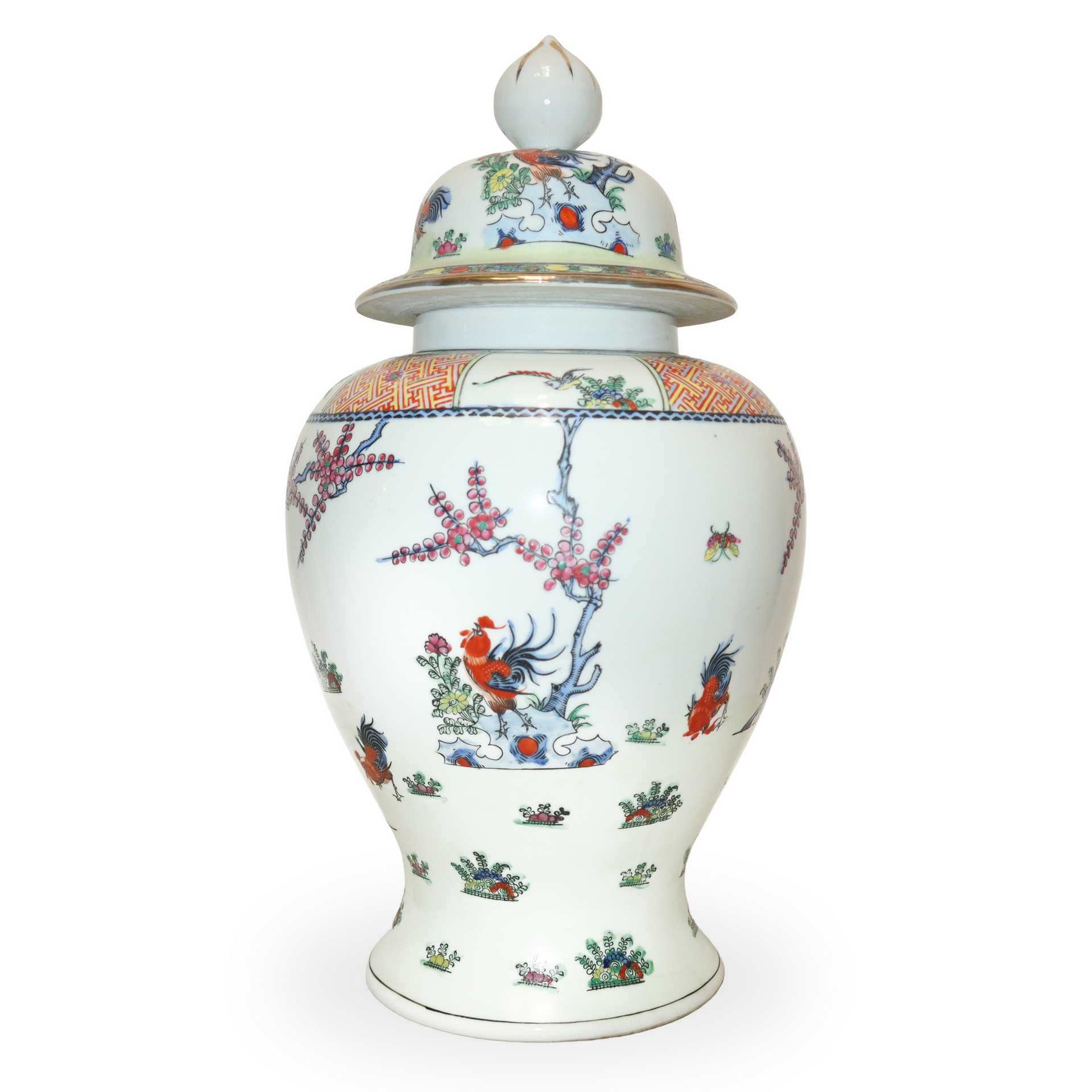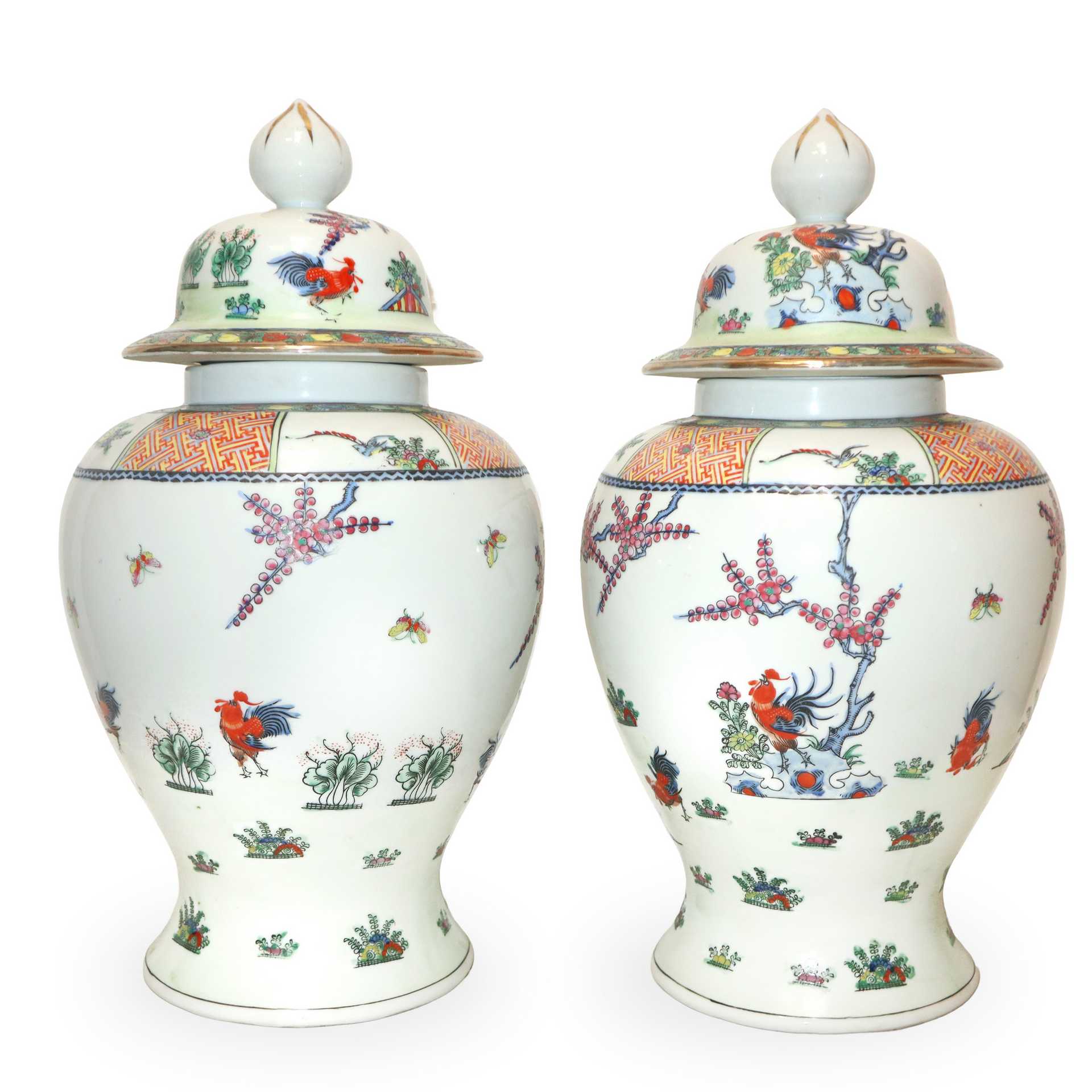Poutiche cinesi in porcellana bianca con decori floreali , h cm 47,5