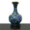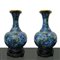 Coppia di vasi cloisonne cinesi , h cm 25,5x15 Fiori azzurri e blu con foglie, decori in dorato. Etichetta alla base