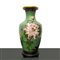 Lotto 212 | Coppia di vasi cinesi cloisonne a sfondo verde acqua con fiori rosa e giallo, decori dorati