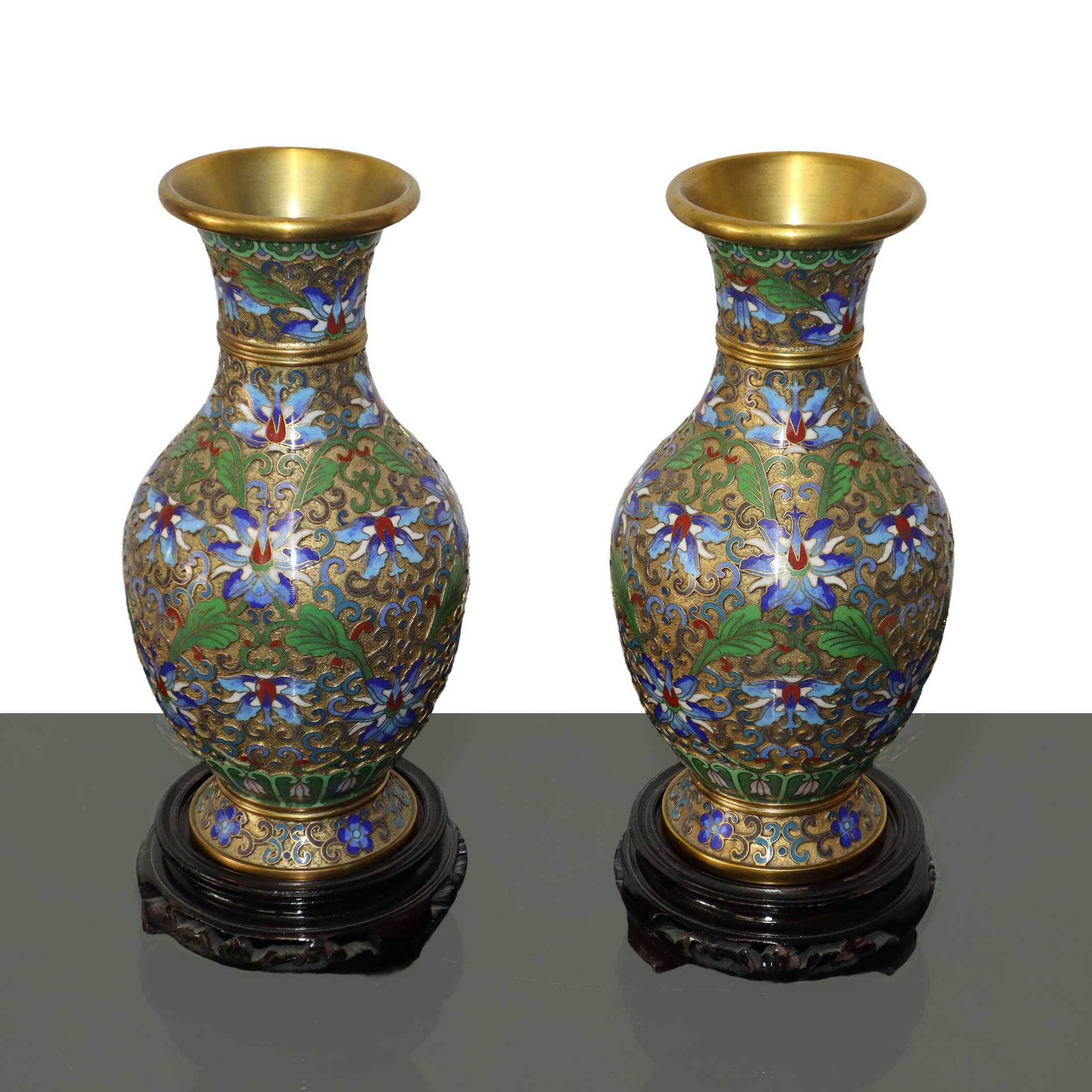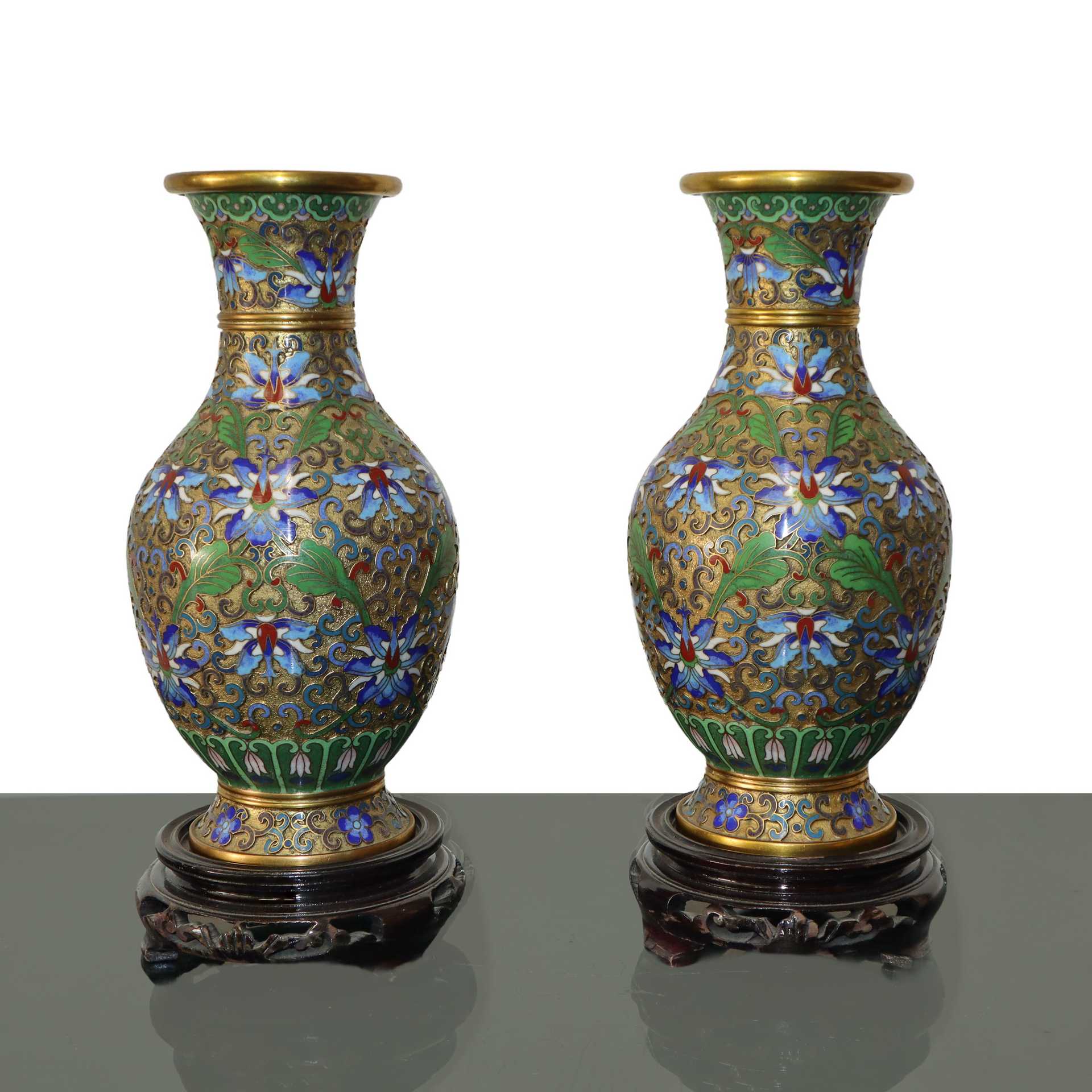 Lotto 213 | Coppia di vasi in metallo con smalti cloisonnet blu e bianchi