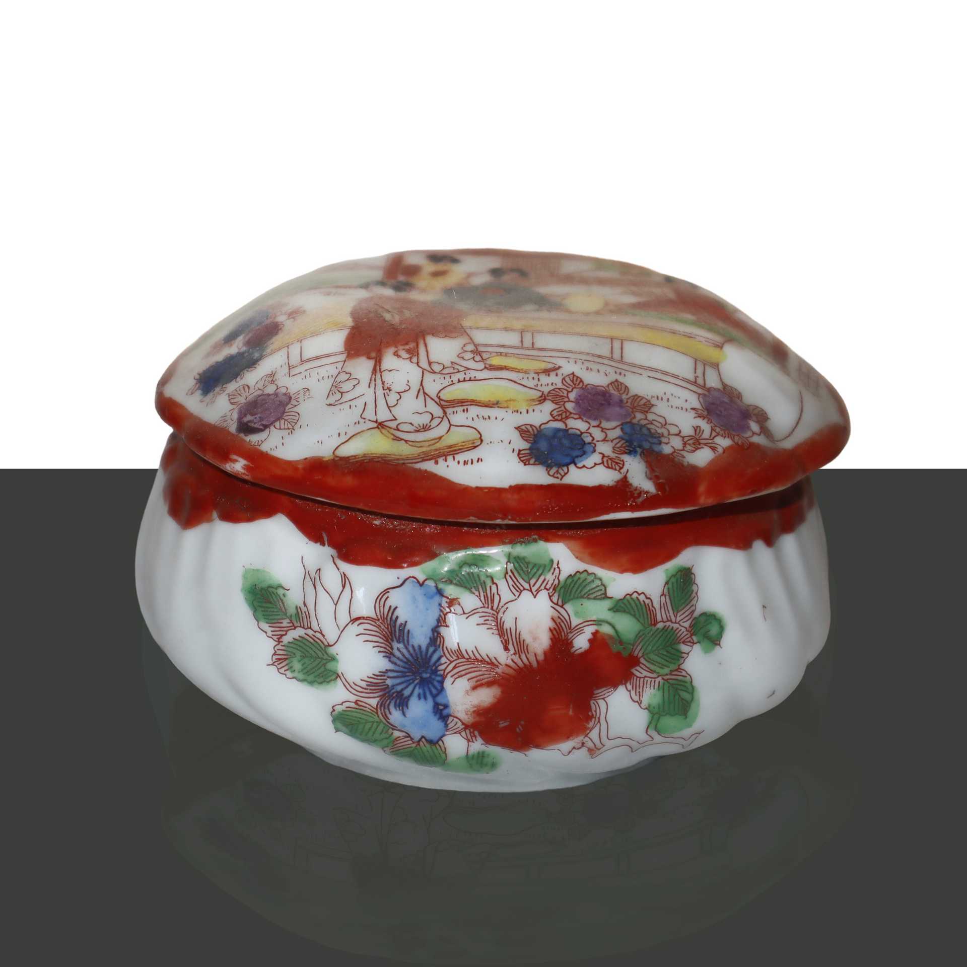 Precedente Lotto 237 Successivo Art La Rosa Casa d'Aste - Viale Africa 12, 95129 CATANIA #152: Arte Orientale #152: Arte Orientale giovedì 6 novembre 2025 ore 17:00 (UTC +01:00) Portagioie con coperchio Portagioie con coperchio , h cm 6 x 9,5 Porcellana cinese