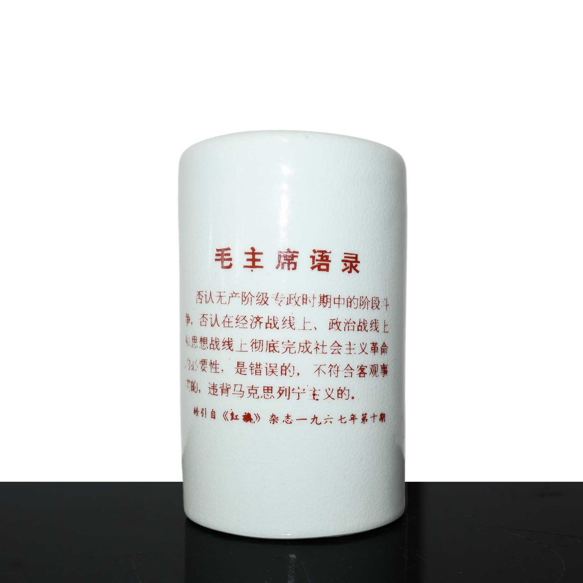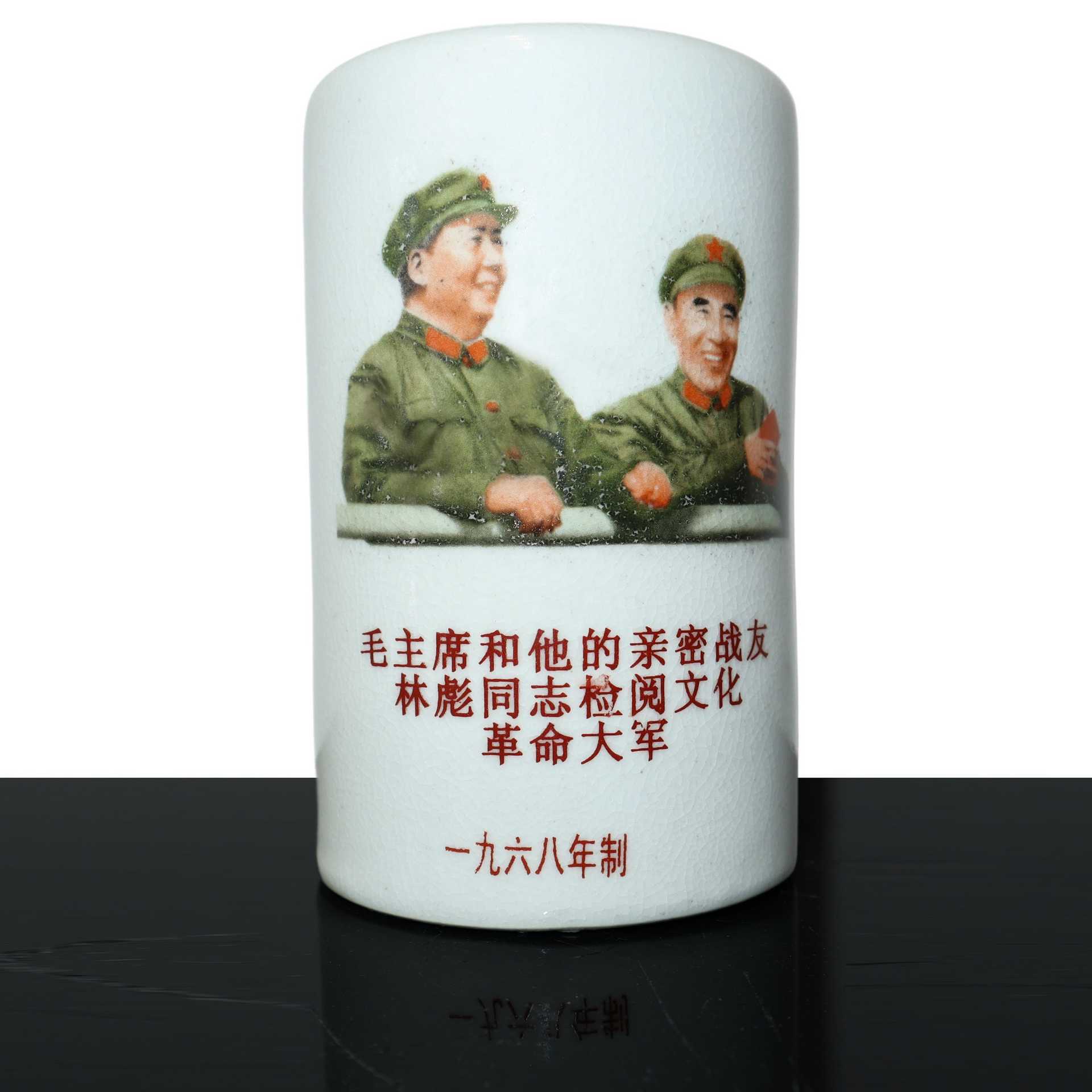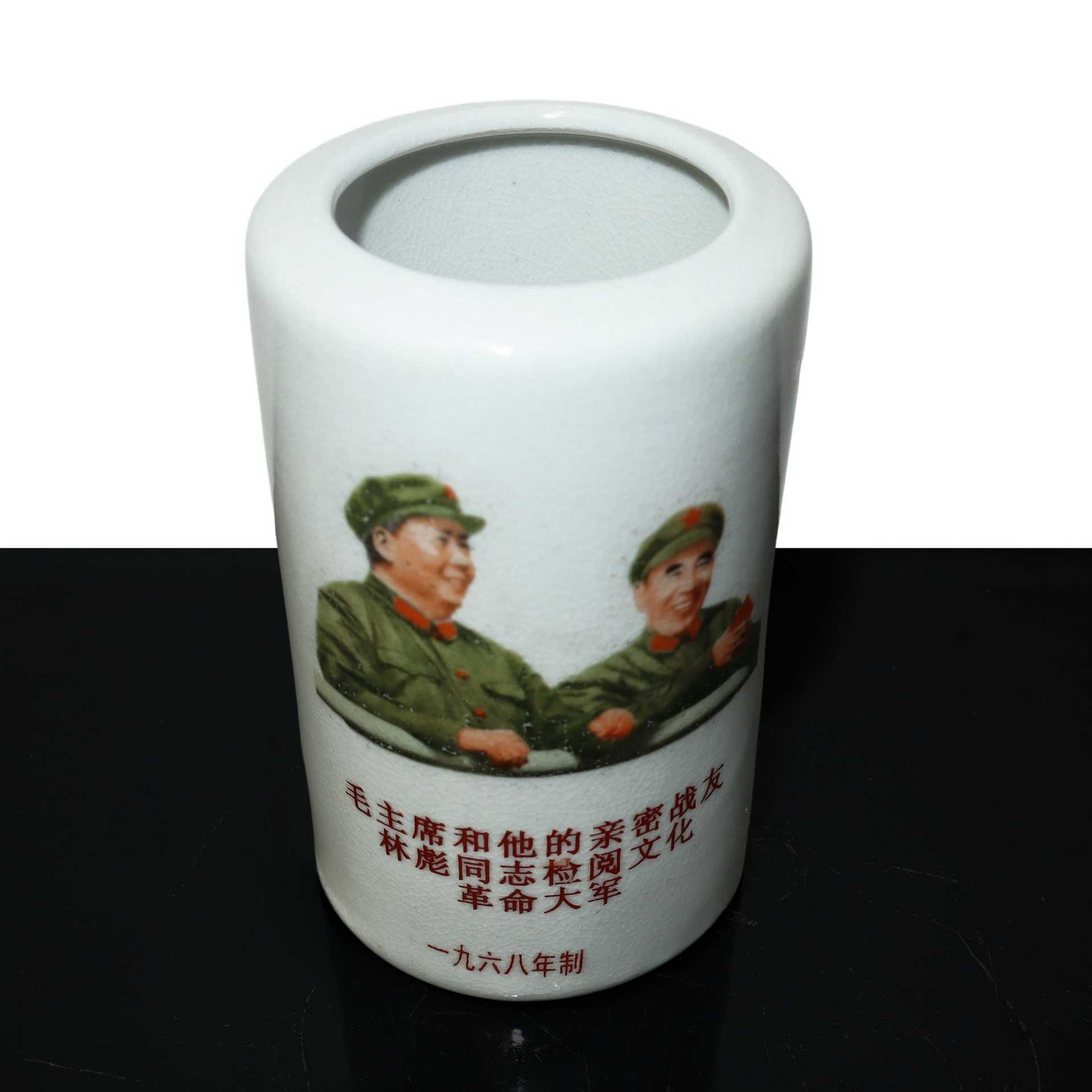 Portapennelli con raffigurazione di Mao Zedong e Zhou Enlai ed iscrizioni cinesi , h cm 13
