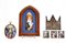 LOTTO DI SEI ICONE, XIX-XX SECOLO, composto da icona a medaglione in smalto con iscrizioni, tre piccole placchette a smalti con scene delle vita di Cristo, trittico in argento sbalzato inglese e placchetta in porcellana con Madonna con Bambino; difetti e restauri.