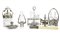 LOTTO DI DIVERSI OGGETTI IN ARGENTO, XIX.-XX SECOLO, composto da una piccola lucerna, Milano, 1840 ca., un tagliacarte con lama in avorio, un'oliera e un vasetto Liberty, un set da tavola con quattro flaconi uniti a un secchiello e un tampone in metallo argentato; difetti e usure.