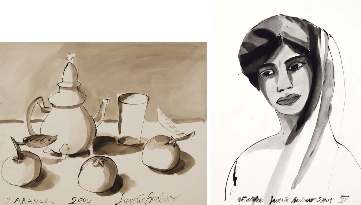 BARBARO SAVERIO Venezia 1924 Arance 2004 - Somala 2001 lotto di due tecniche miste su cartoncino 55x70 - 75x55 cm entrambe firmate e datate in basso