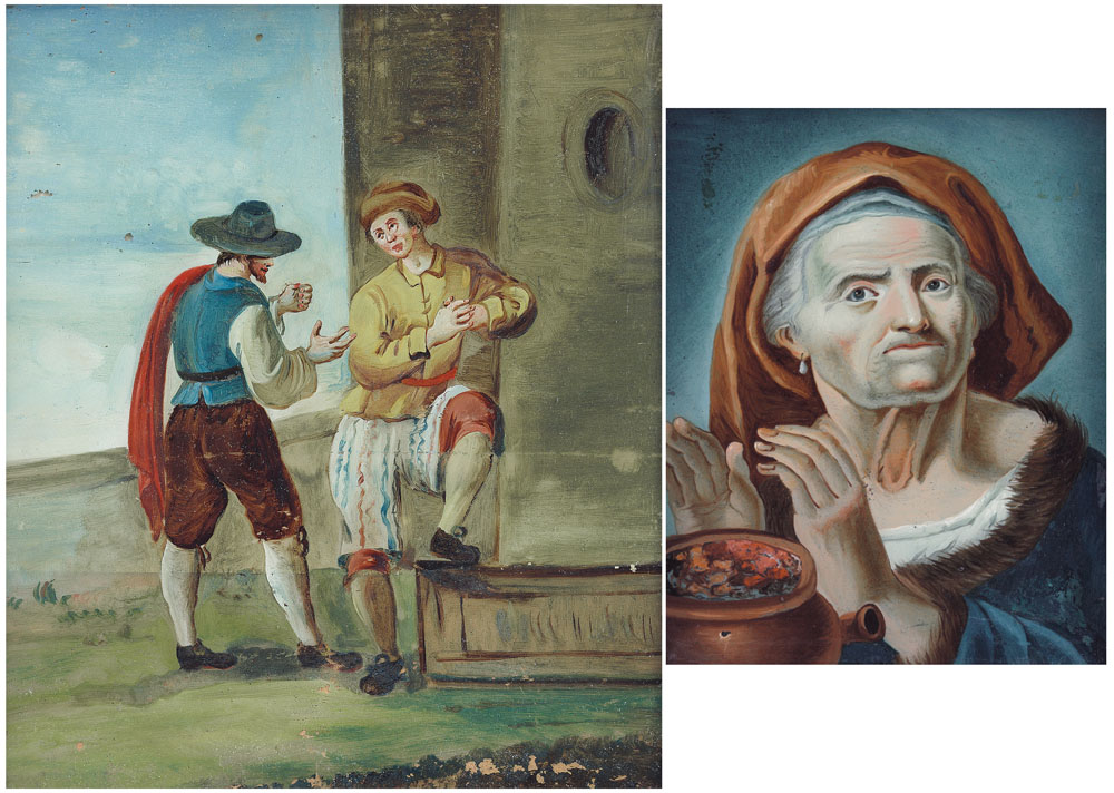 Due oli su vetro, cm 24x19 e 33,5x28.