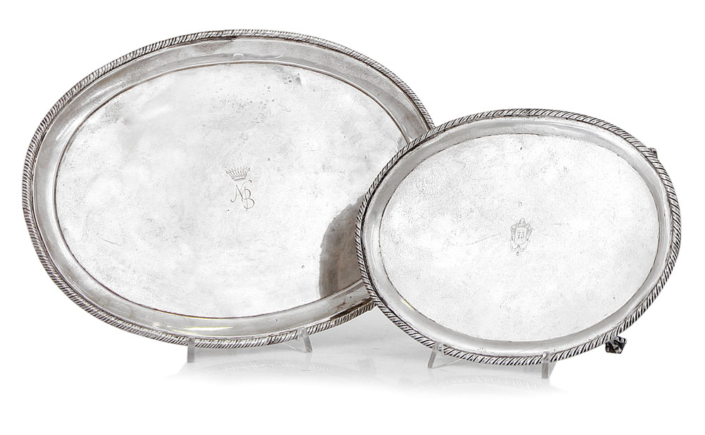 ARGENTI D'EPOCA DUE DIVERSI VASSOI IN ARGENTO, VENEZIA, XVIII SECOLO, ovali...