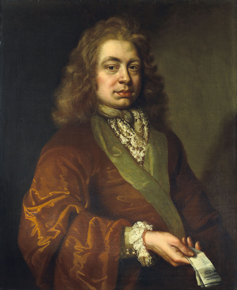 PITTORE DEL XVIII SECOLO Ritratto di gentiluomo con letteraOlio su tela, cm...